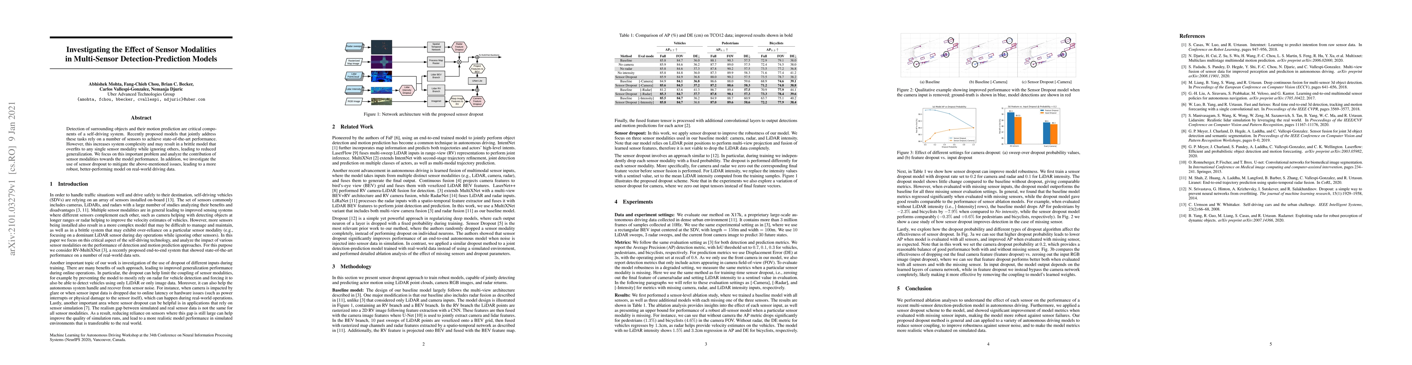 Researchers investigated how different sensors affect self-driving systems' performance in detecting objects and predicting their motion. They found that using multiple sensors can improve model accuracy but also increases the risk of overfitting to a single sensor modality.