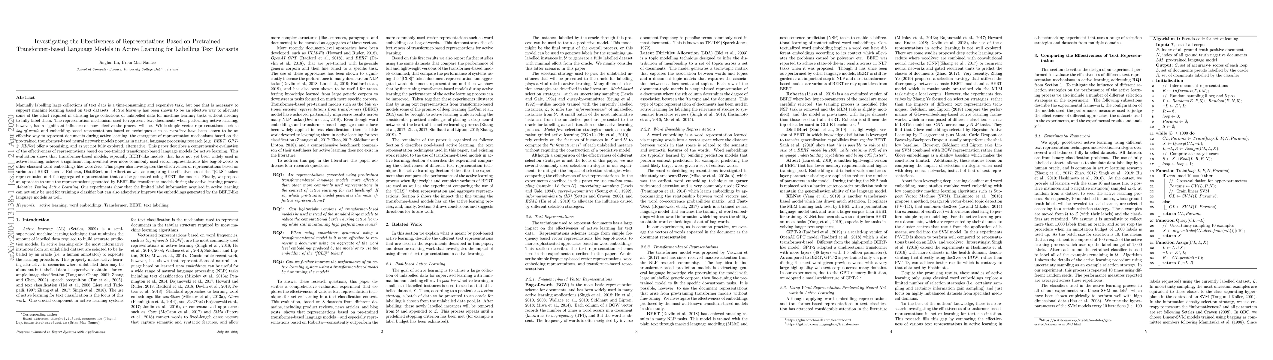 Active learning has been shown to be an effective way to alleviate some of the effort required in utilising large collections of unlabelled data for machine learning tasks without needing to fully label them. The representation mechanism used to represent text documents when performing active learning, however, has a significant influence on how effective the process will be. While simple vector representations such as bag-of-words and embedding-based representations based on techniques such as word2vec have been shown to be an effective way to represent documents during active learning, the emergence of representation mechanisms based on the pre-trained transformer-based neural network models popular in natural language processing research (e.g. BERT) offer a promising, and as yet not fully explored, alternative. This paper describes a comprehensive evaluation of the effectiveness of representations based on pre-trained transformer-based language models for active learning. This evaluation shows that transformer-based models, especially BERT-like models, that have not yet been widely used in active learning, achieve a significant improvement over more commonly used vector representations like bag-of-words or other classical word embeddings like word2vec. This paper also investigates the effectiveness of representations based on variants of BERT such as Roberta, Albert as well as comparing the effectiveness of the [CLS] token representation and the aggregated representation that can be generated using BERT-like models. Finally, we propose an approach Adaptive Tuning Active Learning. Our experiments show that the limited label information acquired in active learning can not only be used for training a classifier but can also adaptively improve the embeddings generated by the BERT-like language models as well.