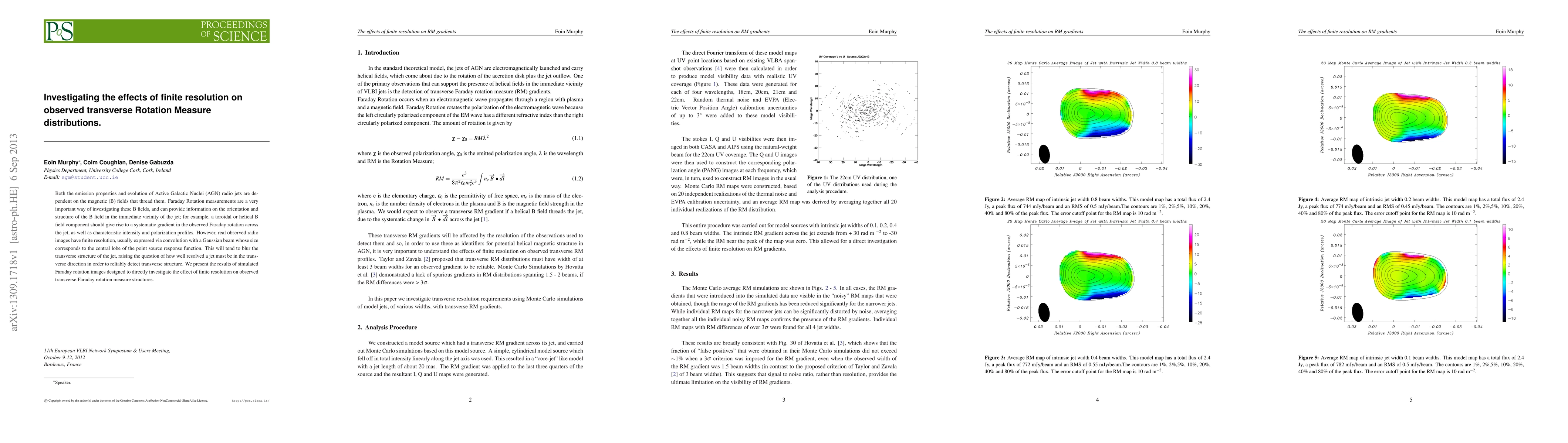 Both the emission properties and evolution of Active Galactic Nuclei (AGN) radio jets are dependent on the magnetic (B) fields that thread them. Faraday Rotation measurements are a very important way of investigating these B fields, and can provide information on the orientation and structure of the B field in the immediate vicinity of the jet; for example, a toroidal or helical B field component should give rise to a systematic gradient in the observed Faraday rotation across the jet, as well as characteristic intensity and polarization profiles. However, real observed radio images have finite resolution, usually expressed via convolution with a Gaussian beam whose size corresponds to the central lobe of the point source response function. This will tend to blur the transverse structure of the jet, raising the question of how well resolved a jet must be in the transverse direction in order to reliably detect transverse structure. We present the results of simulated Faraday rotation images designed to directly investigate the effect of finite resolution on observed transverse Faraday rotation measure structures.