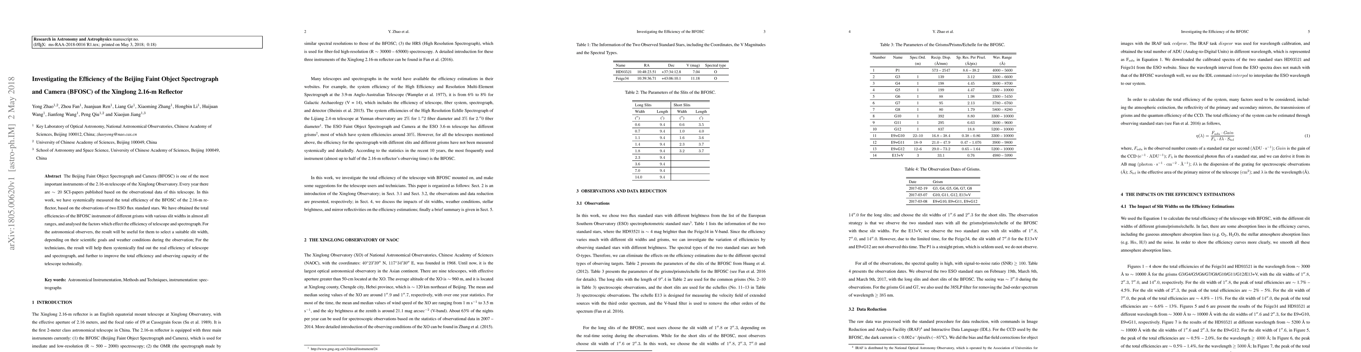 This paper systematically measures the efficiency of the Beijing Faint Object Spectrograph and Camera (BFOSC) on the Xinglong 2.16-m telescope, analyzing how different grisms and slit widths affect performance. The findings provide valuable insights for astronomers in selecting optimal observational parameters and for technicians to enhance the telescope's efficiency.