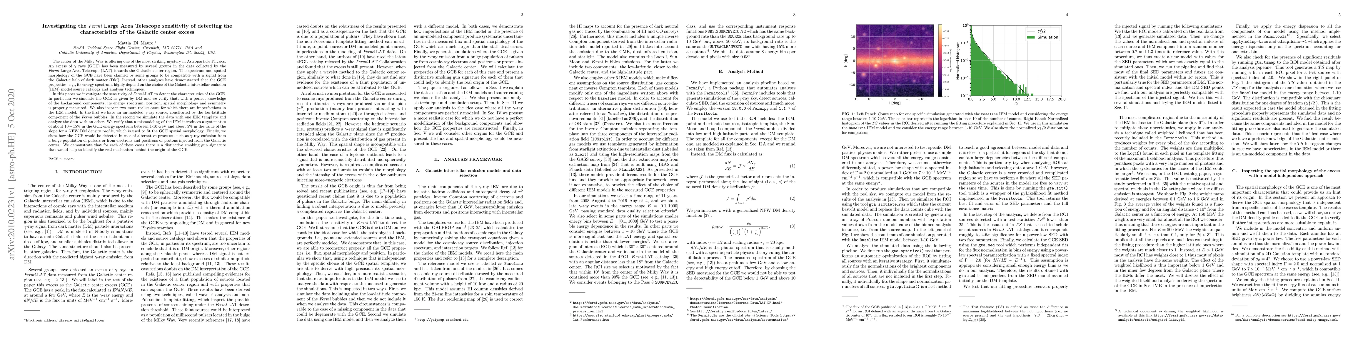 This paper investigates the Fermi Large Area Telescope's sensitivity to detect the Galactic Center Excess (GCE) in gamma rays, exploring whether it aligns with dark matter signals or other astrophysical sources. The study finds that while perfect background knowledge allows accurate GCE characterization, model imperfections introduce systematic errors, and alternative processes like pulsars or cosmic rays have distinct signatures.