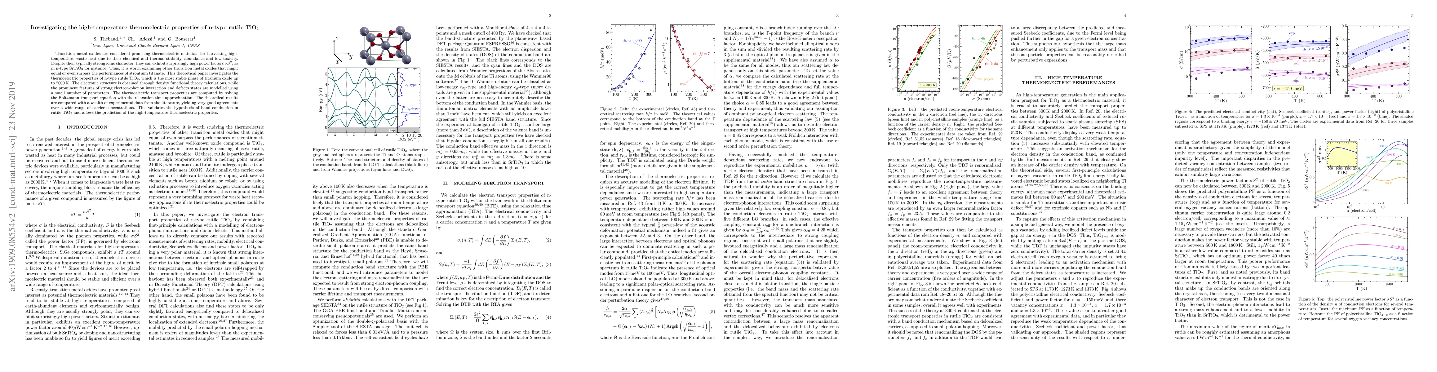The paper investigates the thermoelectric properties of n-type rutile TiO2, a promising material for harvesting high-temperature waste heat, and finds good agreement with experimental data, validating band conduction in rutile TiO2.