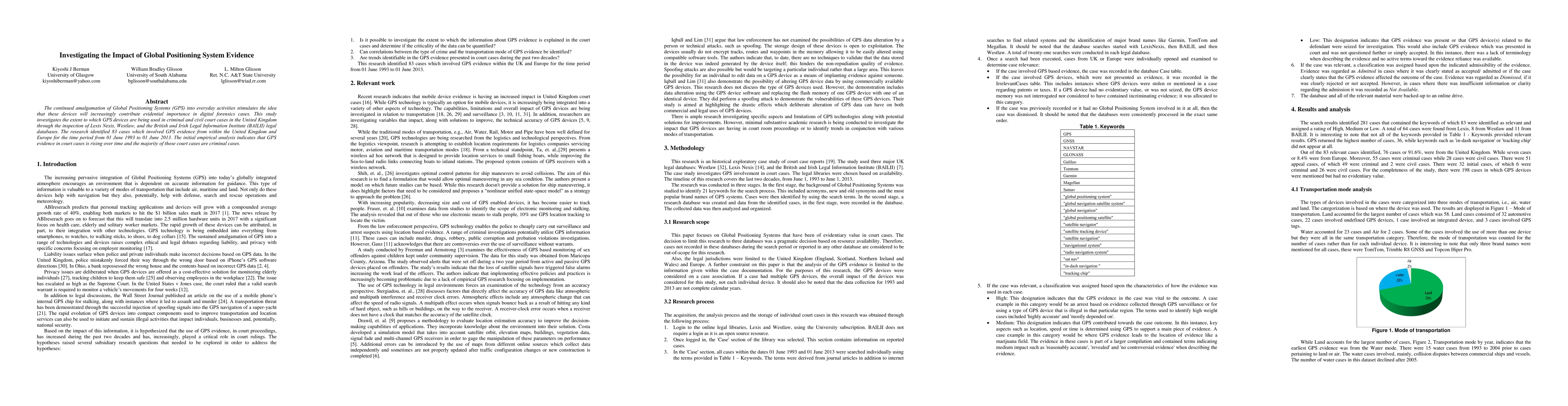 The continued amalgamation of Global Positioning Systems (GPS) into everyday activities stimulates the idea that these devices will increasingly contribute evidential importance in digital forensics cases. This study investigates the extent to which GPS devices are being used in criminal and civil court cases in the United Kingdom through the inspection of Lexis Nexis, Westlaw, and the British and Irish Legal Information Institute (BAILII) legal databases. The research identified 83 cases which involved GPS evidence from within the United Kingdom and Europe for the time period from 01 June 1993 to 01 June 2013. The initial empirical analysis indicates that GPS evidence in court cases is rising over time and the majority of those court cases are criminal cases.