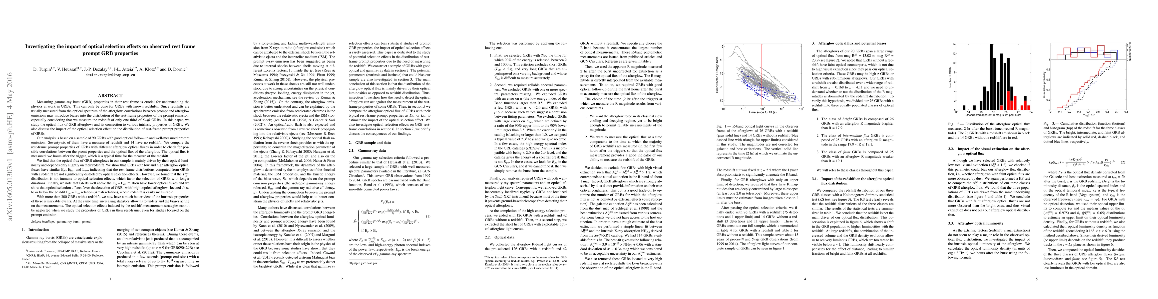 This study investigates how optical selection effects influence the observed properties of gamma-ray bursts (GRBs) in their rest frame. The analysis of 90 GRBs with optical follow-up reveals that while optical brightness correlates with intrinsic afterglow luminosity, it does not significantly distort rest-frame properties like Epi, Eiso, and Liso. However, the T90 distribution is biased towards longer-duration GRBs, indicating an optical selection effect.