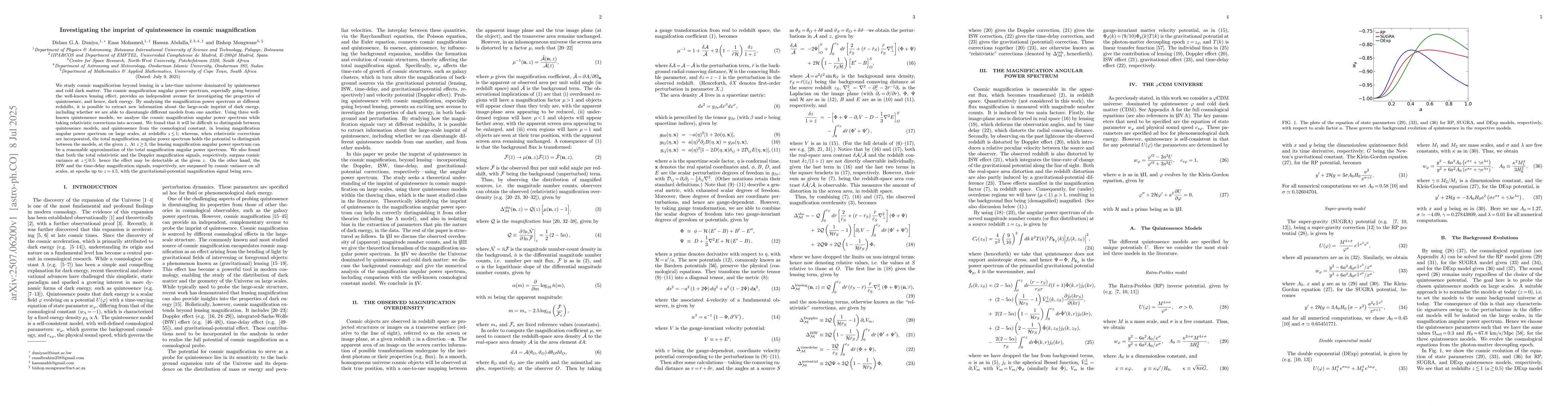 We study cosmic magnification beyond lensing in a late-time universe dominated by quintessence and cold dark matter. The cosmic magnification angular power spectrum, especially going beyond the well-known lensing effect, provides an independent avenue for investigating the properties of quintessence, and hence, dark energy. By analysing the magnification power spectrum at different redshifts, it is possible to extract new information about the large-scale imprint of dark energy, including whether we are able to disentangle different models from one another. Using three well-known quintessence models, we analyse the cosmic magnification angular power spectrum while taking relativistic corrections into account. We found that it will be difficult to distinguish between quintessence models, and quintessence from the cosmological constant, in lensing magnification angular power spectrum on large scales, at redshifts $z \,{\leq}\, 1$; whereas, when relativistic corrections are incorporated, the total magnification angular power spectrum holds the potential to distinguish between the models, at the given $z$. At $z \,{\geq}\, 3$, the lensing magnification angular power spectrum can be a reasonable approximation of the total magnification angular power spectrum. We also found that both the total relativistic and the Doppler magnification signals, respectively, surpass cosmic variance at $z \,{\leq}\, 0.5$: hence the effect may be detectable at the given $z$. On the other hand, the ISW and the time-delay magnification signals, respectively, are surpassed by cosmic variance on all scales, at epochs up to $z \,{=}\, 4.5$, with the gravitational-potential magnification signal being zero.