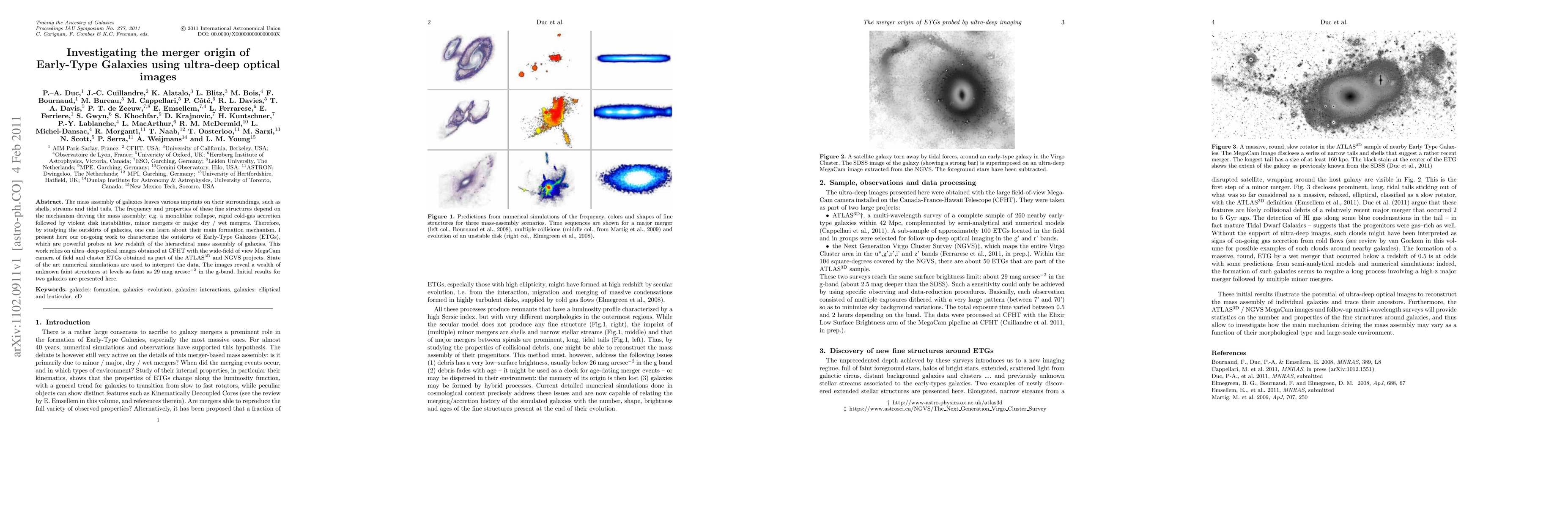 The mass assembly of galaxies leaves various imprints on their surroundings, such as shells, streams and tidal tails. The frequency and properties of these fine structures depend on the mechanism driving the mass assembly: e.g. a monolithic collapse, rapid cold-gas accretion followed by violent disk instabilities, minor mergers or major dry / wet mergers. Therefore, by studying the outskirts of galaxies, one can learn about their main formation mechanism. I present here our on-going work to characterize the outskirts of Early-Type Galaxies (ETGs), which are powerful probes at low redshift of the hierarchical mass assembly of galaxies. This work relies on ultra-deep optical images obtained at CFHT with the wide-field of view MegaCam camera of field and cluster ETGs obtained as part of the Atlas-3D and NGVS projects. State of the art numerical simulations are used to interpret the data. The images reveal a wealth of unknown faint structures at levels as faint as 29 mag arcsec-2 in the g-band. Initial results for two galaxies are presented here.