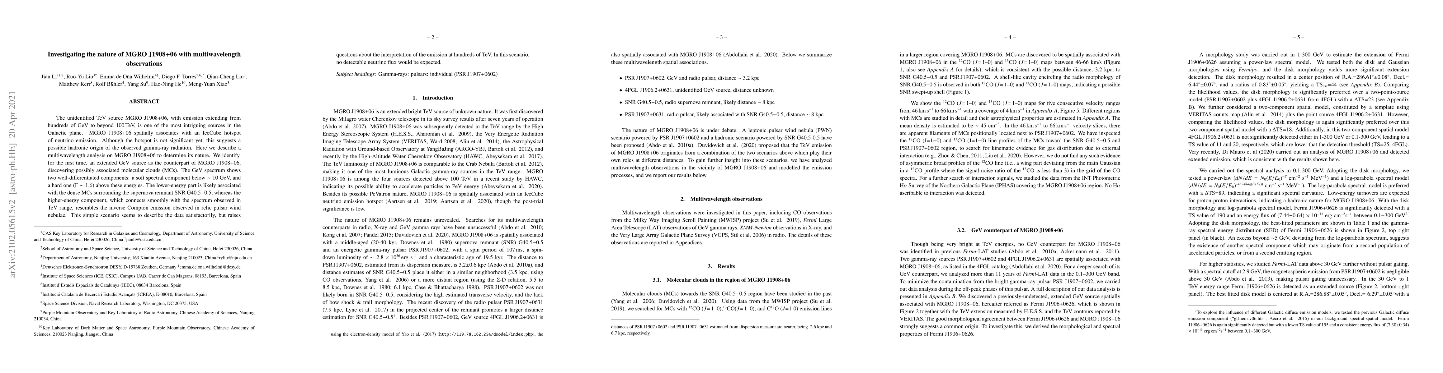 This paper investigates the nature of the unidentified TeV gamma-ray source MGRO J1908+06 through multiwavelength observations, identifying an extended GeV source and associated molecular clouds. The GeV spectrum reveals two distinct components, suggesting different origins for the lower and higher energy emissions.
