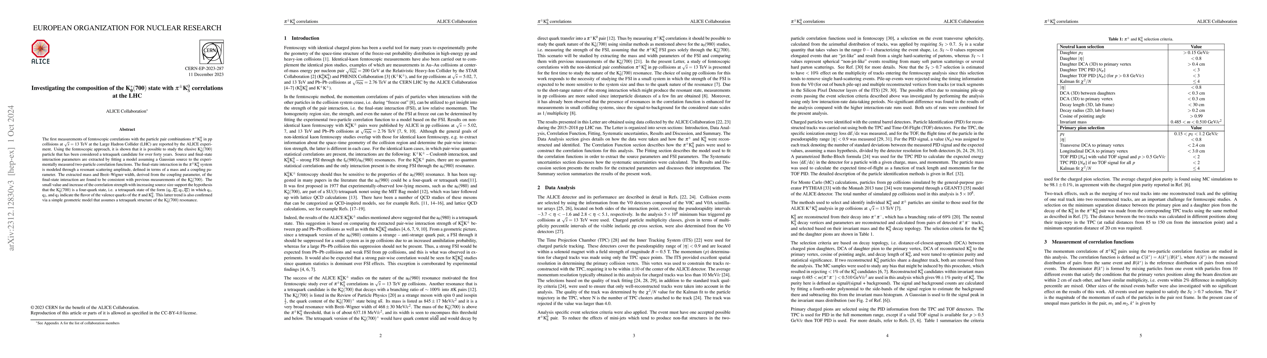 The ALICE experiment at the LHC reports the first femtoscopic correlations of $\pi^\pm$K$^0_{\rm S}$ pairs, providing evidence that the K$^*_0(700)$ particle is likely a tetraquark state based on the extracted mass and Breit-Wigner width. The correlation strength's behavior supports a four-quark structure.