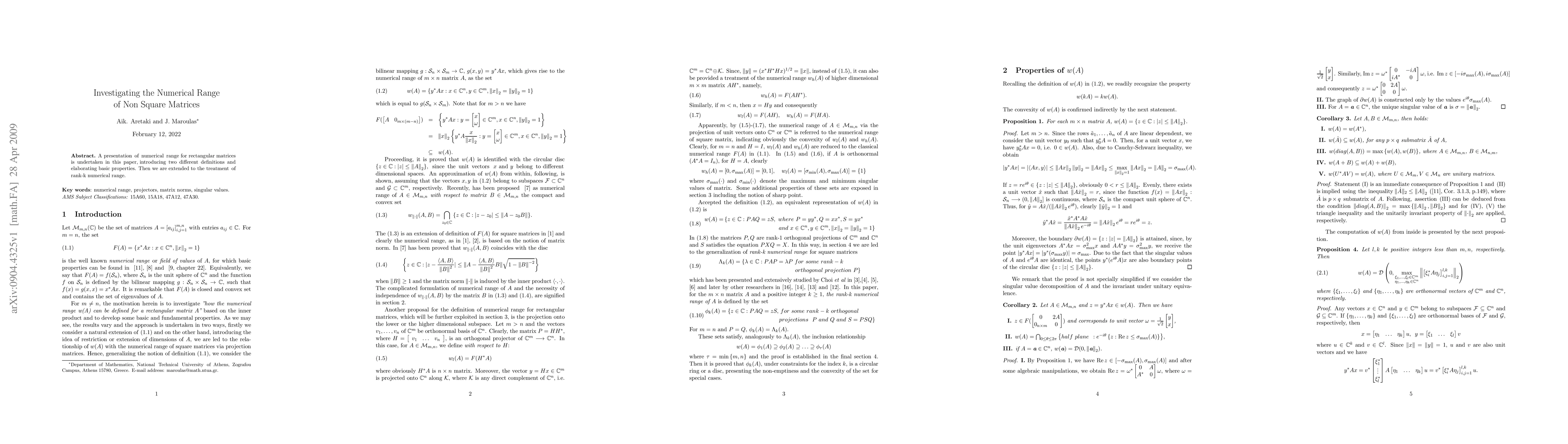 This paper investigates numerical range for non-square matrices, introducing two definitions and exploring rank-k properties, providing a foundation for understanding matrix behavior in various applications.