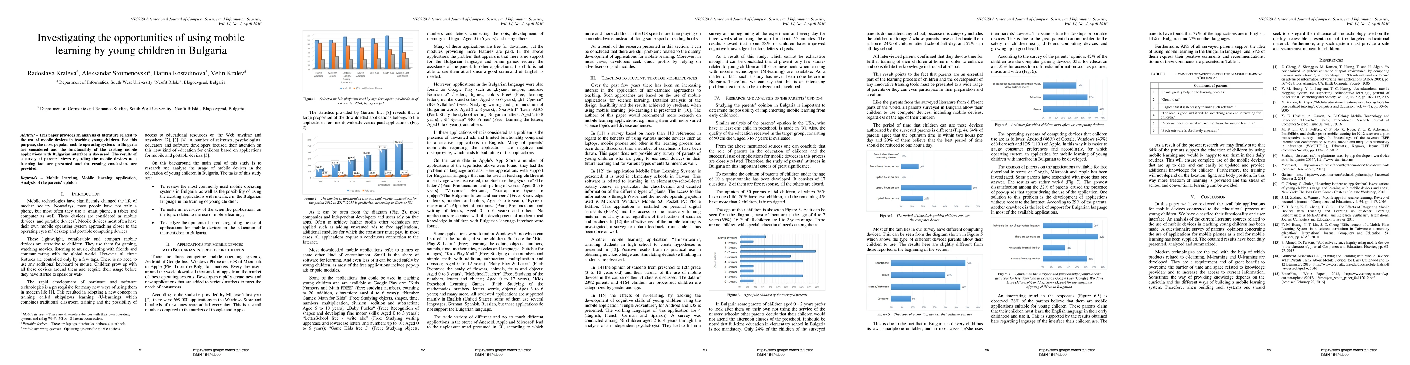 The research highlights opportunities and limitations of using mobile devices to support early childhood education in Bulgaria.