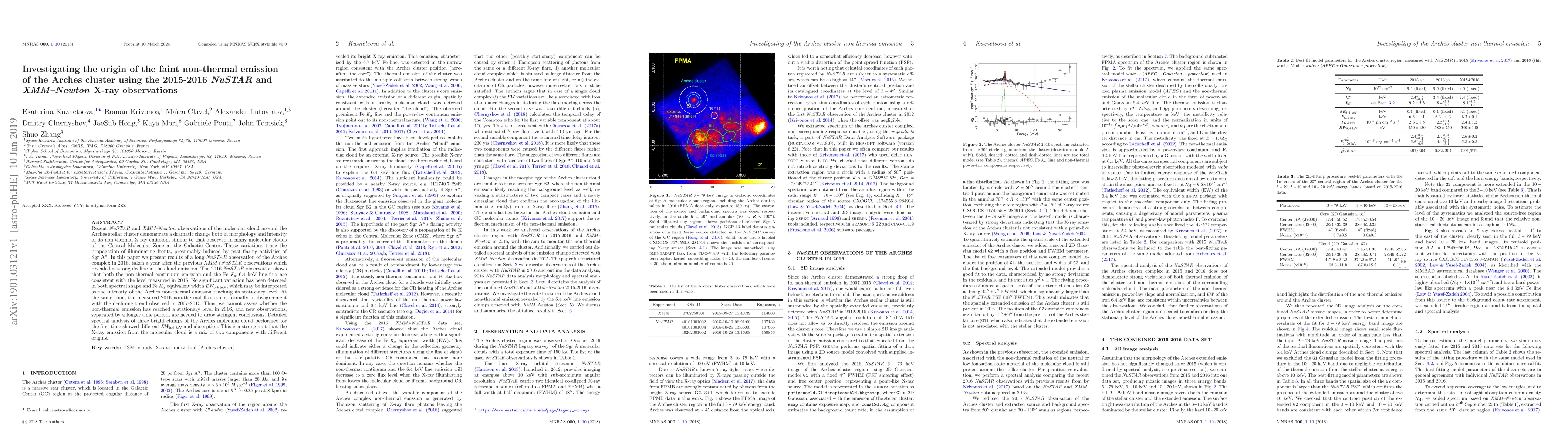 The research utilized 2015-2016 NuSTAR and XMM-Newton X-ray observations to investigate the faint non-thermal emission of the Arches cluster, focusing on morphological and intensity changes in its non-thermal X-ray emission.