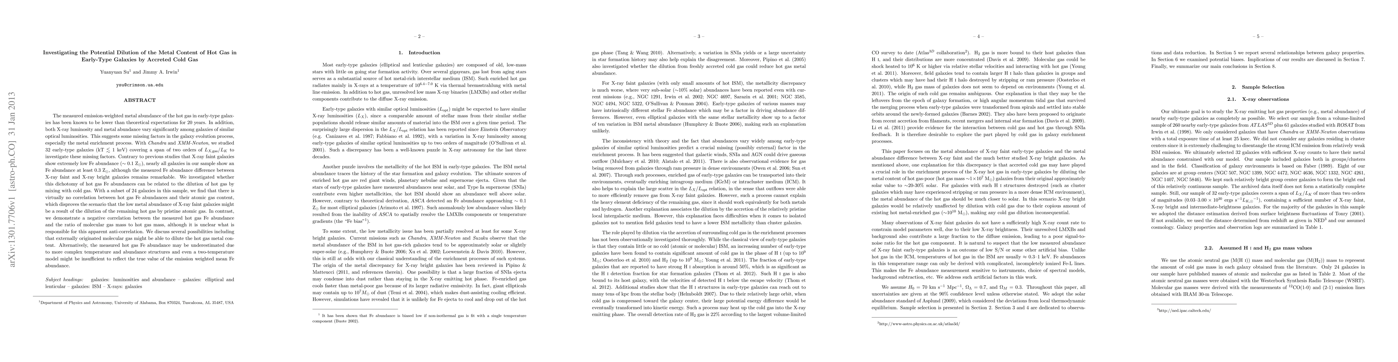 Researchers studied 32 early-type galaxies using X-ray telescopes to investigate why hot gas metal content is lower than expected. They found no correlation between hot gas metal content and atomic gas content, but a negative correlation with molecular gas mass, suggesting that dilution by external molecular gas might be responsible for the low metal abundance of X-ray faint galaxies.