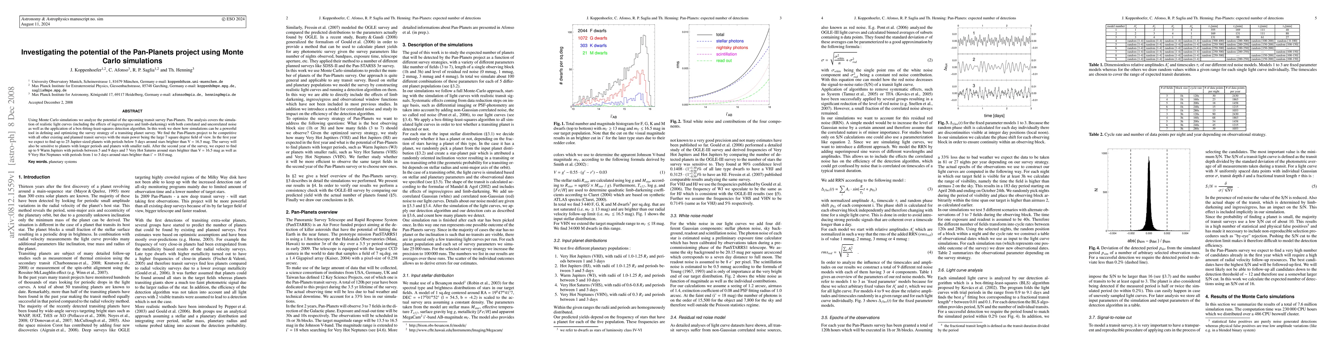 Using Monte Carlo simulations we analyze the potential of the upcoming transit survey Pan-Planets. The analysis covers the simulation of realistic light curves (including the effects of ingress/egress and limb-darkening) with both correlated and uncorrelated noise as well as the application of a box-fitting-least-squares detection algorithm. In this work we show how simulations can be a powerful tool in defining and optimizing the survey strategy of a transiting planet survey. We find the Pan-Planets project to be competitive with all other existing and planned transit surveys with the main power being the large 7 square degree field of view. In the first year we expect to find up to 25 Jupiter-sized planets with periods below 5 days around stars brighter than V = 16.5 mag. The survey will also be sensitive to planets with longer periods and planets with smaller radii. After the second year of the survey, we expect to find up to 9 Warm Jupiters with periods between 5 and 9 days and 7 Very Hot Saturns around stars brighter than V = 16.5 mag as well as 9 Very Hot Neptunes with periods from 1 to 3 days around stars brighter than i' = 18.0 mag.