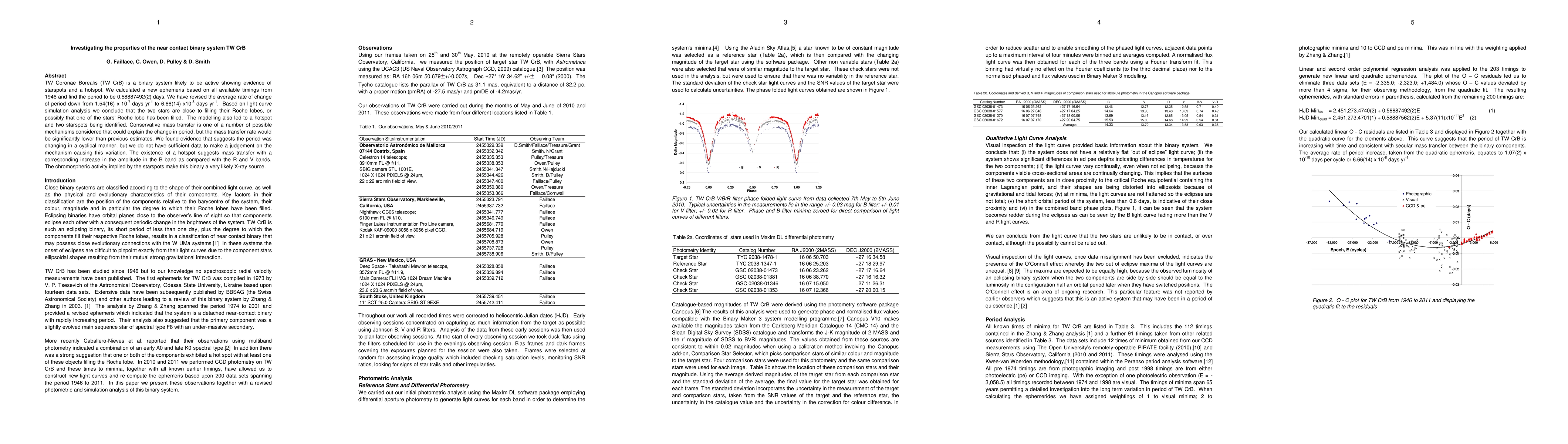 Researchers studied TW CrB, a binary system thought to be active, finding evidence of starspots and a hotspot, with a revised period of 0.58887492 days and cyclical changes in the star's orbit.