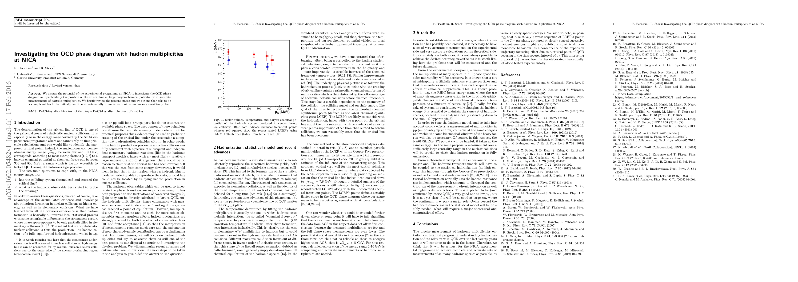 This paper explores the capability of NICA's experimental program to map the QCD phase diagram, focusing on the critical line's position at high baryon-chemical potential through precise measurements of hadron multiplicities. It reviews current status and outlines theoretical and experimental tasks needed to leverage hadronic abundances for this investigation.
