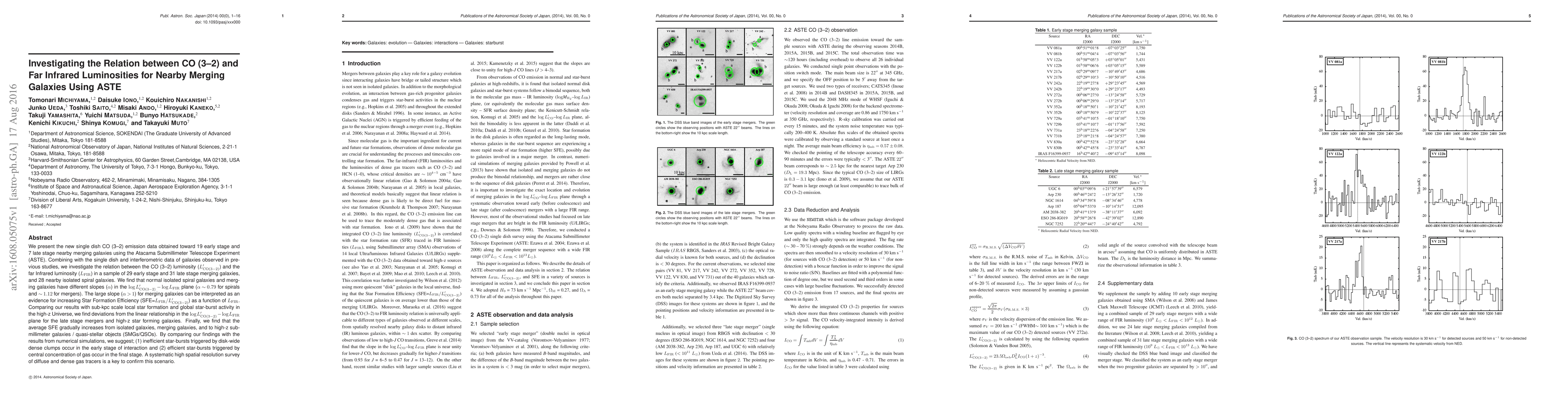 We present the new single dish CO (3-2) emission data obtained toward 19 early stage and 7 late stage nearby merging galaxies using the Atacama Submillimeter Telescope Experiment (ASTE). Combining with the single dish and interferometric data of galaxies observed in previous studies, we investigate the relation between the CO (3-2) luminosity (L'CO(3-2)) and the far Infrared luminosity (LFIR) in a sample of 29 early stage and 31 late stage merging galaxies, and 28 nearby isolated spiral galaxies. We find that normal isolated spiral galaxies and merging galaxies have different slopes (alpha) in the log L'CO(3-2) - log LFIR plane (alpha ~ 0.79 for spirals and ~ 1.12 for mergers). The large slope (alpha > 1) for merging galaxies can be interpreted as an evidence for increasing Star Formation Efficiency (SFE=LFIR/L'CO(3-2)) as a function of LFIR. Comparing our results with sub-kpc scale local star formation and global star-burst activity in the high-z Universe, we find deviations from the linear relationship in the log L'CO(3-2) - log LFIR plane for the late stage mergers and high-z star forming galaxies. Finally, we find that the average SFE gradually increases from isolated galaxies, merging galaxies, and to high-z submillimeter galaxies / quasi-stellar objects (SMGs/QSOs). By comparing our findings with the results from numerical simulations, we suggest; (1) inefficient star-bursts triggered by disk-wide dense clumps occur in the early stage of interaction and (2) efficient star-bursts triggered by central concentration of gas occur in the final stage. A systematic high spatial resolution survey of diffuse and dense gas tracers is a key to confirm this scenario.