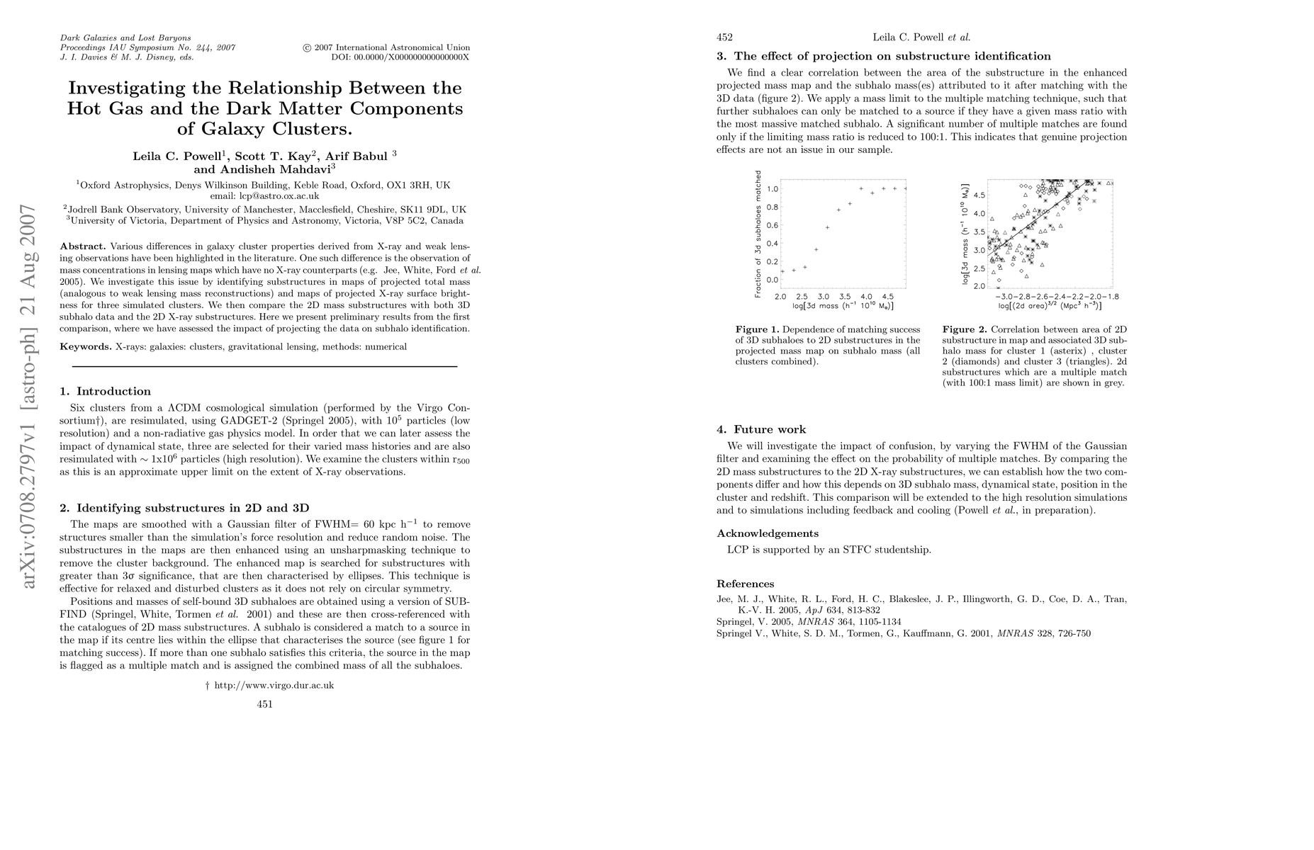 Researchers investigated the relationship between hot gas and dark matter in galaxy clusters using simulations and comparisons to X-ray observations. They found that projected mass substructures have no X-ray counterparts, highlighting a discrepancy between different data sets.