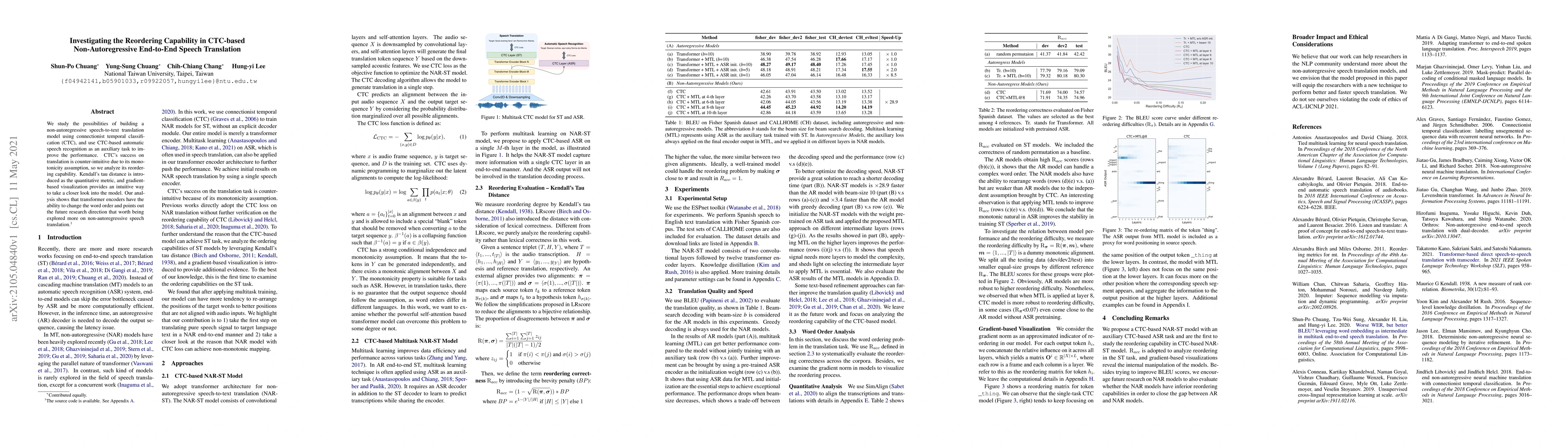 We study the possibilities of building a non-autoregressive speech-to-text translation model using connectionist temporal classification (CTC), and use CTC-based automatic speech recognition as an auxiliary task to improve the performance. CTC's success on translation is counter-intuitive due to its monotonicity assumption, so we analyze its reordering capability. Kendall's tau distance is introduced as the quantitative metric, and gradient-based visualization provides an intuitive way to take a closer look into the model. Our analysis shows that transformer encoders have the ability to change the word order and points out the future research direction that worth being explored more on non-autoregressive speech translation.