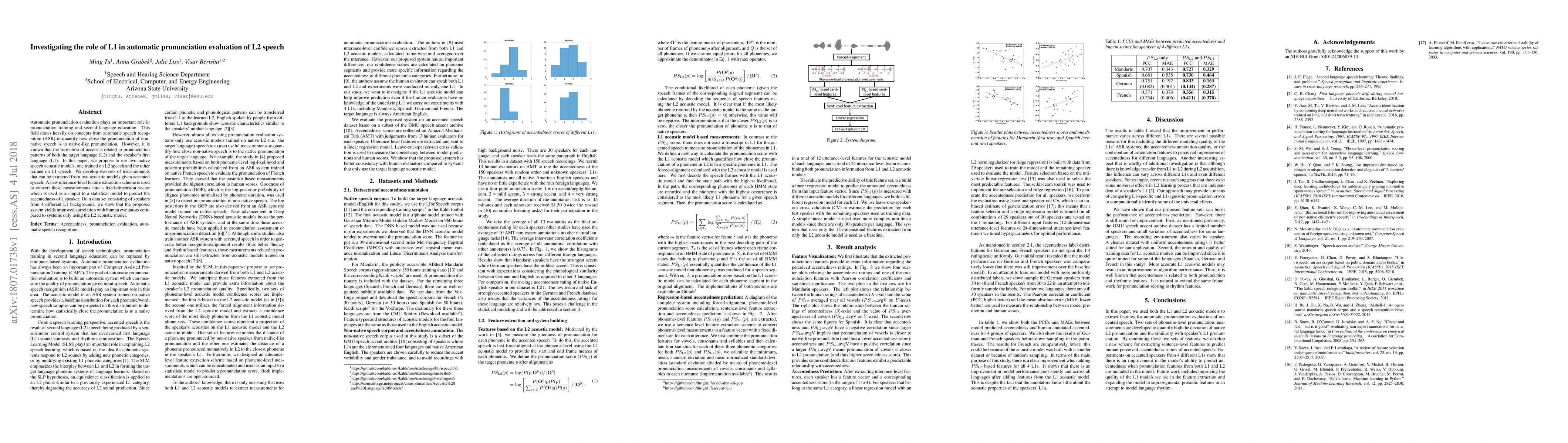 This paper investigates the impact of first language (L1) on automatic pronunciation evaluation of second language (L2) speech, proposing the use of L1 and L2 native speech acoustic models to better predict accentedness. The results show improved correlation with human evaluators compared to systems relying solely on L2 models.