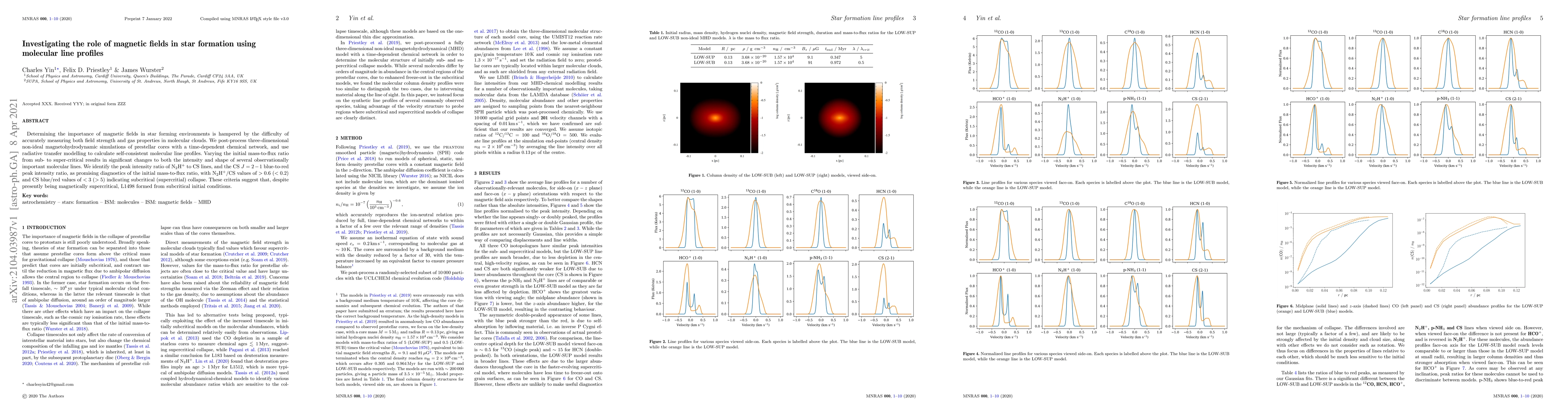Determining the importance of magnetic fields in star forming environments is hampered by the difficulty of accurately measuring both field strength and gas properties in molecular clouds. We post-process three-dimensional non-ideal magnetohydrodynamic simulations of prestellar cores with a time-dependent chemical network, and use radiative transfer modelling to calculate self-consistent molecular line profiles. Varying the initial mass-to-flux ratio from sub- to super-critical results in significant changes to both the intensity and shape of several observationally important molecular lines. We identify the peak intensity ratio of N$_2$H$^+$ to CS lines, and the CS $J=2-1$ blue-to-red peak intensity ratio, as promising diagnostics of the initial mass-to-flux ratio, with N$_2$H$^+$/CS values of $>0.6$ ($<0.2$) and CS blue/red values of $<3$ ($>5$) indicating subcritical (supercritial) collapse. These criteria suggest that, despite presently being magnetically supercritical, L1498 formed from subcritical initial conditions.