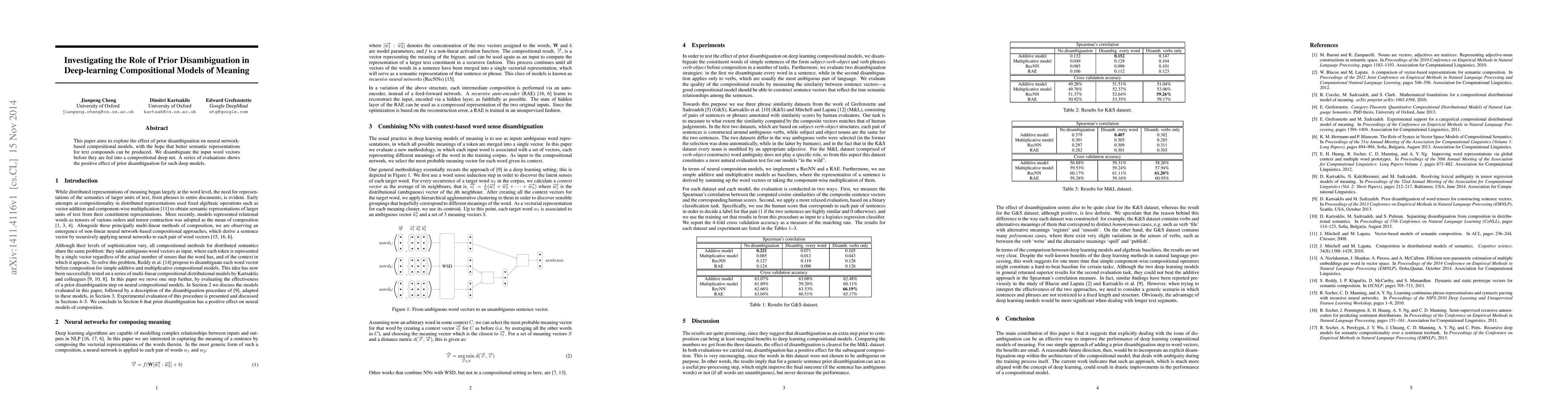 This paper aims to explore the effect of prior disambiguation on neural network- based compositional models, with the hope that better semantic representations for text compounds can be produced. We disambiguate the input word vectors before they are fed into a compositional deep net. A series of evaluations shows the positive effect of prior disambiguation for such deep models.