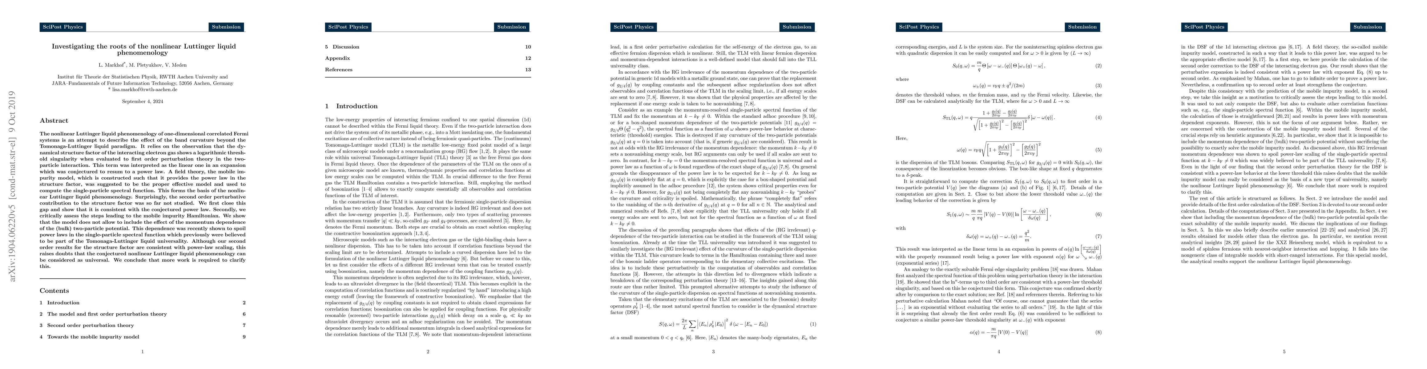 The nonlinear Luttinger liquid phenomenology of one-dimensional correlated Fermi systems is an attempt to describe the effect of the band curvature beyond the Tomonaga-Luttinger liquid paradigm. It relies on the observation that the dynamical structure factor of the interacting electron gas shows a logarithmic threshold singularity when evaluated to first order perturbation theory in the two-particle interaction. This term was interpreted as the linear one in an expansion which was conjectured to resum to a power law. A field theory, the mobile impurity model, which is constructed such that it provides the power law in the structure factor, was suggested to be the proper effective model and used to compute the single-particle spectral function. This forms the basis of the nonlinear Luttinger liquid phenomenology. Surprisingly, the second order perturbative contribution to the structure factor was so far not studied. We first close this gap and show that it is consistent with the conjectured power law. Secondly, we critically assess the steps leading to the mobile impurity Hamiltonian. We show that the model does not allow to include the effect of the momentum dependence of the (bulk) two-particle potential. This dependence was recently shown to spoil power laws in the single-particle spectral function which previously were believed to be part of the Tomonaga-Luttinger liquid universality. Although our second order results for the structure factor are consistent with power-law scaling, this raises doubts that the conjectured nonlinear Luttinger liquid phenomenology can be considered as universal. We conclude that more work is required to clarify this.