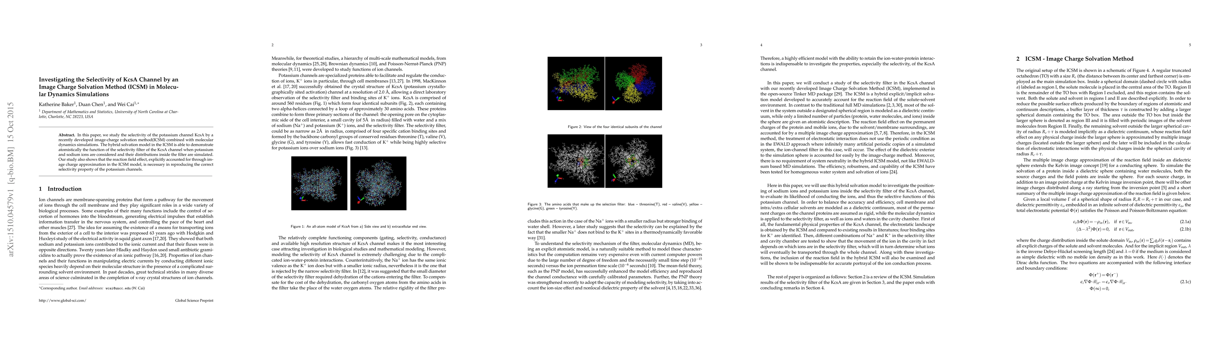 In this paper, we study the selectivity of the potassium channel KcsA by a recently developed image-charge solvation method(ICSM) combined with molecular dynamics simulations. The hybrid solvation model in the ICSM is able to demonstrate atomistically the function of the selectivity filter of the KcsA channel when potassium and sodium ions are considered and their distributions inside the filter are simulated. Our study also shows that the reaction field effect, explicitly accounted for through image charge approximation in the ICSM model, is necessary in reproducing the correct selectivity property of the potassium channels.