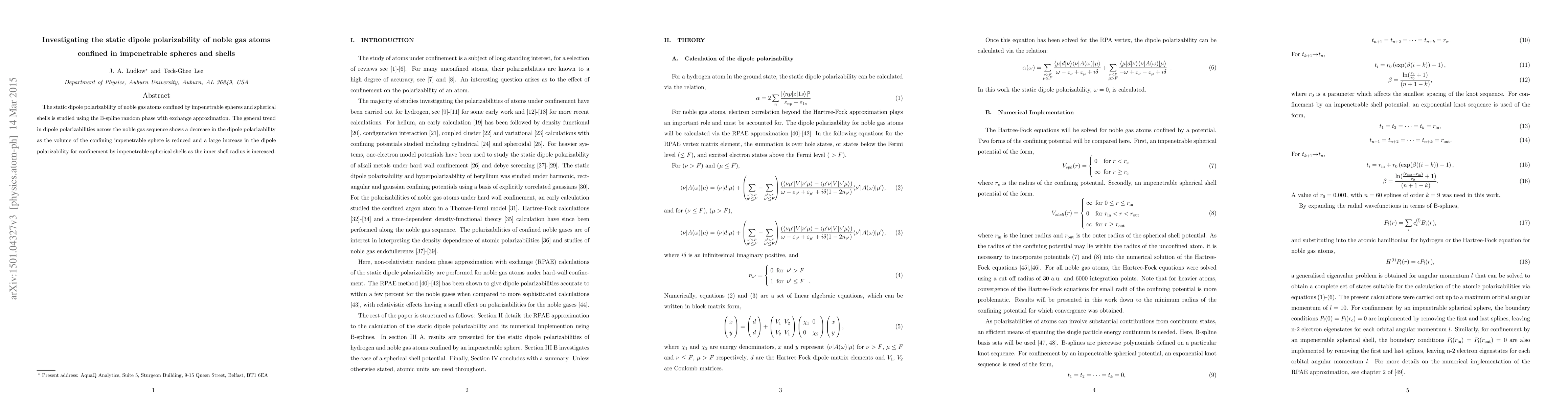 The study investigates how confinement of noble gas atoms affects their dipole polarisability, finding a decrease with smaller confining spheres and an increase with larger shells.