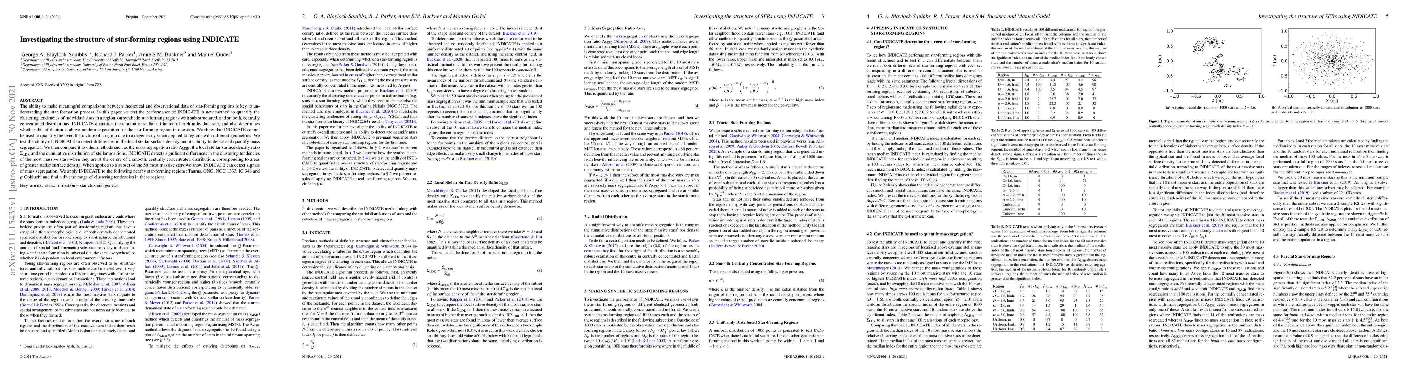 The ability to make meaningful comparisons between theoretical and observational data of star-forming regions is key to understanding the star formation process. In this paper we test the performance of INDICATE, a new method to quantify the clustering tendencies of individual stars in a region, on synthetic star-forming regions with sub-structured, and smooth, centrally concentrated distributions. INDICATE quantifies the amount of stellar affiliation of each individual star, and also determines whether this affiliation is above random expectation for the star-forming region in question. We show that INDICATE cannot be used to quantify the overall structure of a region due to a degeneracy when applied to regions with different geometries. We test the ability of INDICATE to detect differences in the local stellar surface density and its ability to detect and quantify mass segregation. We then compare it to other methods such as the mass segregation ratio $\Lambda_{\rm{MSR}}$, the local stellar surface density ratio $\Sigma_{\rm{LDR}}$ and the cumulative distribution of stellar positions. INDICATE detects significant differences in the clustering tendencies of the most massive stars when they are at the centre of a smooth, centrally concentrated distribution, corresponding to areas of greater stellar surface density. When applied to a subset of the 50 most massive stars we show INDICATE can detect signals of mass segregation. We apply INDICATE to the following nearby star-forming regions: Taurus, ONC, NGC 1333, IC 348 and $\rho$ Ophiuchi and find a diverse range of clustering tendencies in these regions.