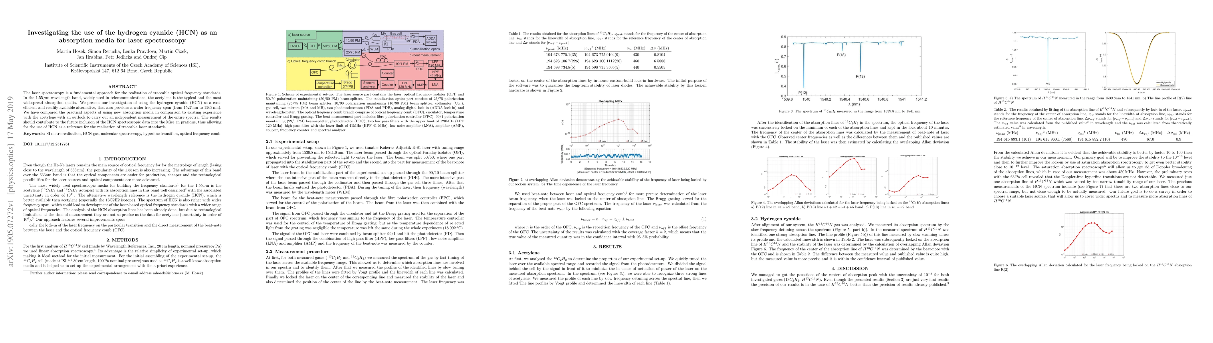 Researchers investigate using hydrogen cyanide (HCN) as a cost-efficient alternative to acetylene for laser spectroscopy in the 1.55μm wavelength band. They find HCN offers a wider frequency span, enabling more flexible optical standards.