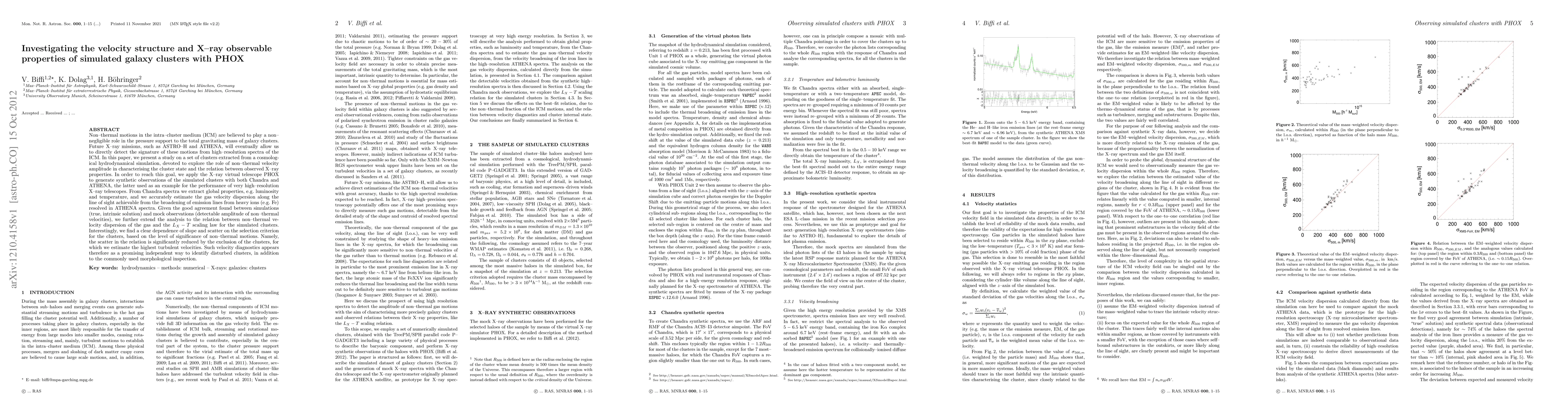 Non-thermal motions in the intra-cluster medium (ICM) are believed to play a non-negligible role in the pressure support to the total gravitating mass of galaxy clusters. Future X-ray missions, such as ASTRO-H and ATHENA, will eventually allow us to directly detect the signature of these motions from high-resolution spectra of the ICM. In this paper, we present a study on a set of clusters extracted from a cosmological hydrodynamical simulation, devoted to explore the role of non-thermal velocity amplitude in characterising the cluster state and the relation between observed X-ray properties. In order to reach this goal, we apply the X-ray virtual telescope PHOX to generate synthetic observations of the simulated clusters with both Chandra and ATHENA, the latter used as an example for the performance of very high-resolution X-ray telescopes. From Chandra spectra we extract global properties, e.g. luminosity and temperature, and from ATHENA spectra we estimate the gas velocity dispersion along the line of sight from the broadening of heavy-ion emission lines (e.g. Fe). We further extend the analysis to the relation between non-thermal velocity dispersion of the gas and the L_X-T scaling law for the simulated clusters. Interestingly, we find a clear dependence of slope and scatter on the selection criterion for the clusters, based on the level of significance of non-thermal motions. Namely, the scatter in the relation is significantly reduced by the exclusion of the clusters, for which we estimate the highest turbulent velocities. Such velocity diagnostics appears therefore as a promising independent way to identify disturbed clusters, in addition to the commonly used morphological inspection.