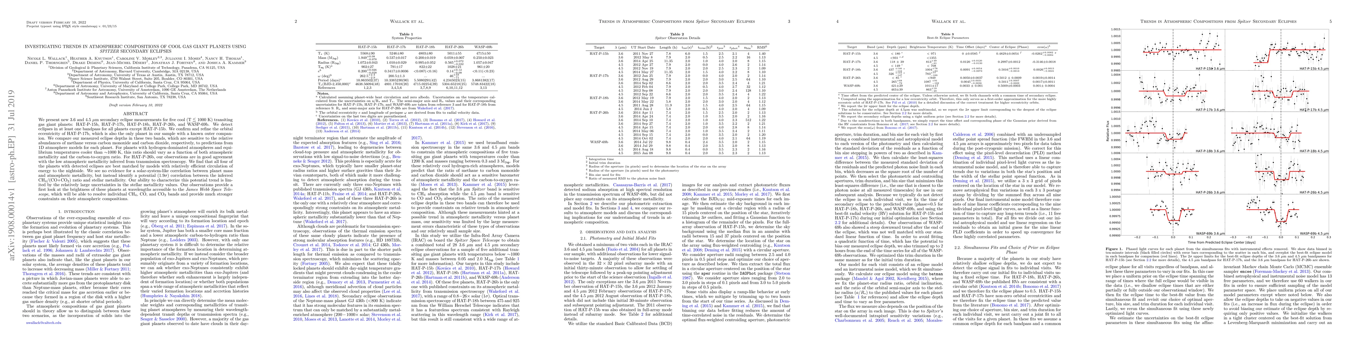 This study investigates the atmospheric compositions of five cool gas giant planets using Spitzer secondary eclipses at 3.6 and 4.5 microns, finding efficient energy circulation in their atmospheres. It identifies a potential correlation between methane/carbon oxide ratios and stellar metallicity, though uncertainties limit the conclusions.
