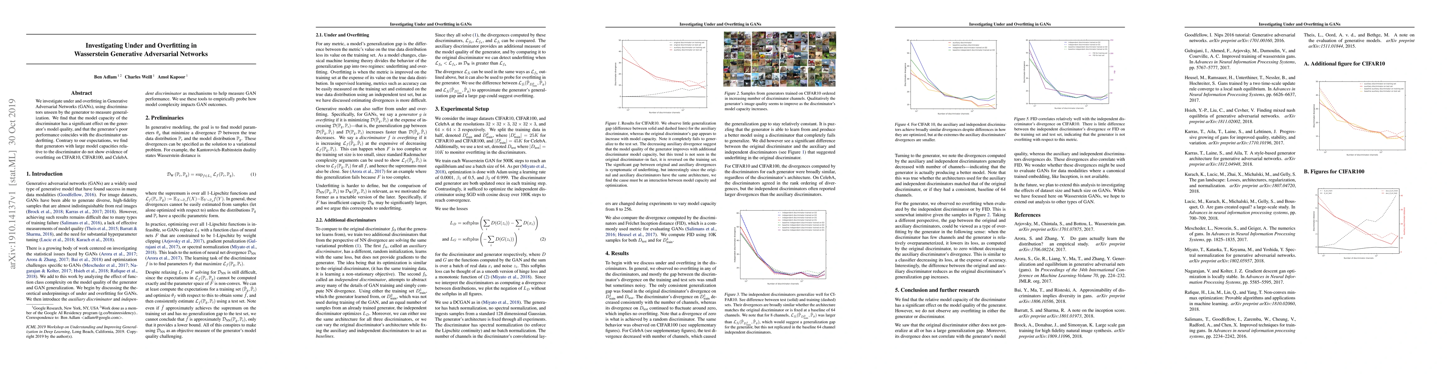 We investigate under and overfitting in Generative Adversarial Networks (GANs), using discriminators unseen by the generator to measure generalization. We find that the model capacity of the discriminator has a significant effect on the generator's model quality, and that the generator's poor performance coincides with the discriminator underfitting. Contrary to our expectations, we find that generators with large model capacities relative to the discriminator do not show evidence of overfitting on CIFAR10, CIFAR100, and CelebA.
