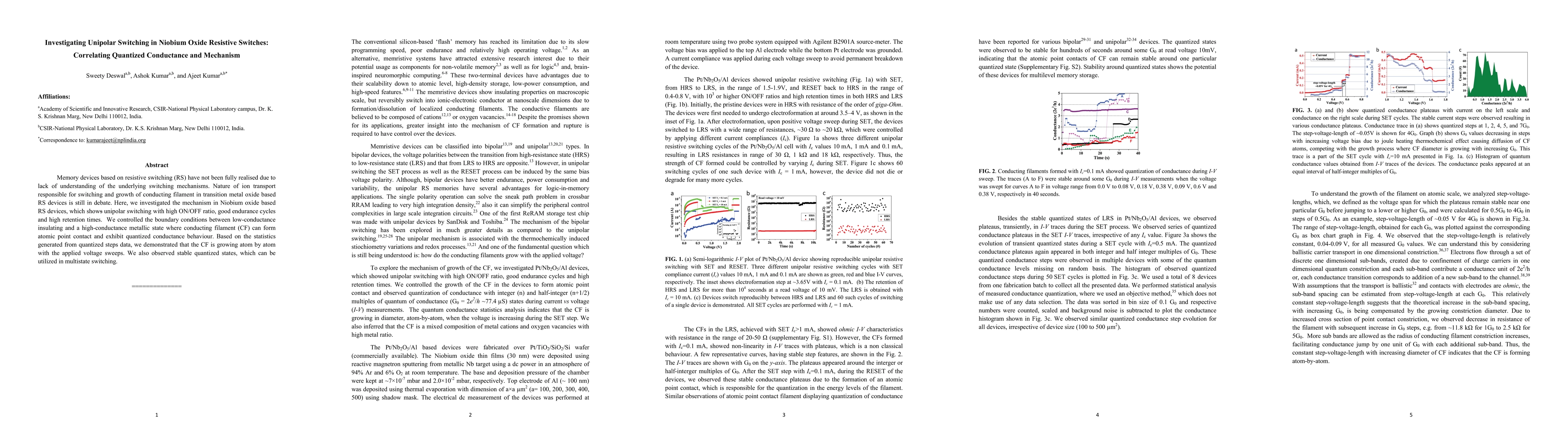 This paper investigates the unipolar resistive switching mechanism in niobium oxide-based memory devices, demonstrating that conducting filaments grow atom by atom, exhibiting quantized conductance. The study highlights the stable quantized states that can enable multistate switching, contributing to a better understanding of the underlying switching mechanisms.