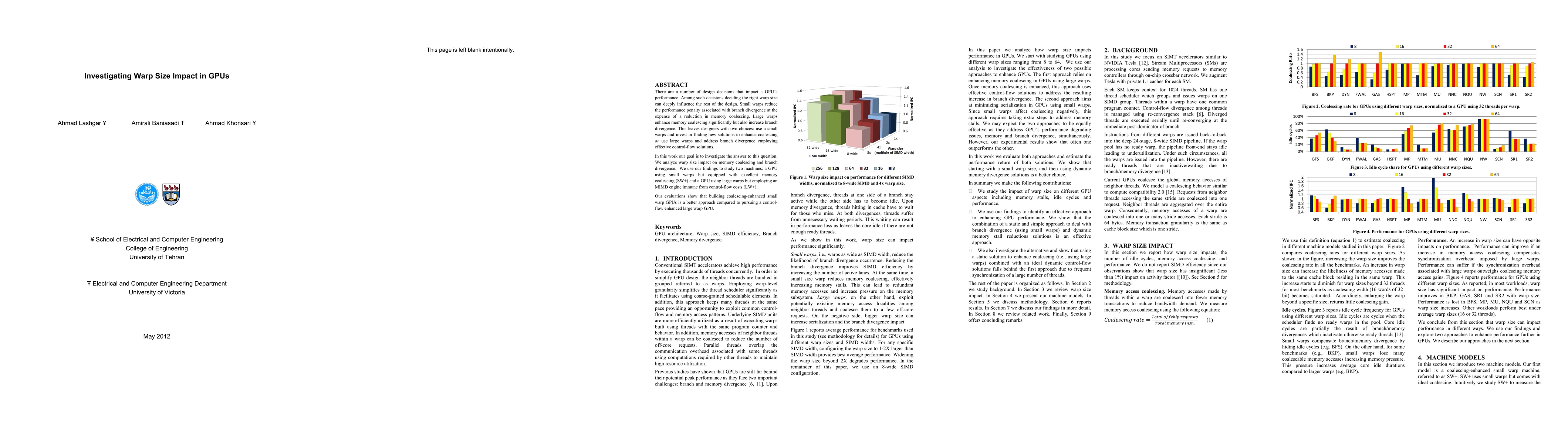 There are a number of design decisions that impact a GPU's performance. Among such decisions deciding the right warp size can deeply influence the rest of the design. Small warps reduce the performance penalty associated with branch divergence at the expense of a reduction in memory coalescing. Large warps enhance memory coalescing significantly but also increase branch divergence. This leaves designers with two choices: use a small warps and invest in finding new solutions to enhance coalescing or use large warps and address branch divergence employing effective control-flow solutions. In this work our goal is to investigate the answer to this question. We analyze warp size impact on memory coalescing and branch divergence. We use our findings to study two machines: a GPU using small warps but equipped with excellent memory coalescing (SW+) and a GPU using large warps but employing an MIMD engine immune from control-flow costs (LW+). Our evaluations show that building coalescing-enhanced small warp GPUs is a better approach compared to pursuing a control-flow enhanced large warp GPU.