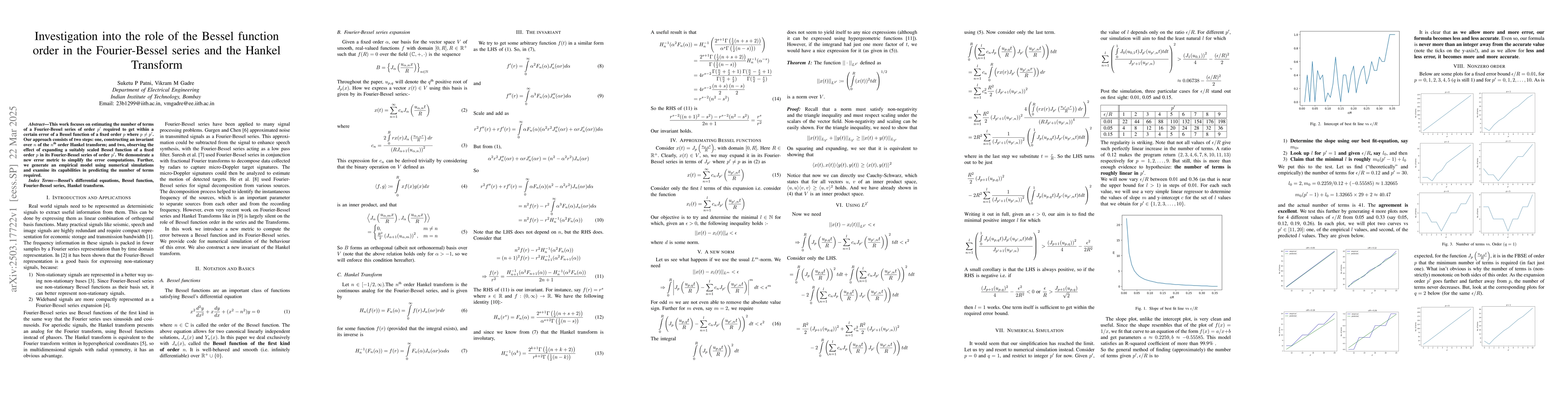 The paper introduces an order-invariant for Hankel transform and a novel method to predict the number of terms required in a Fourier-Bessel series expansion.