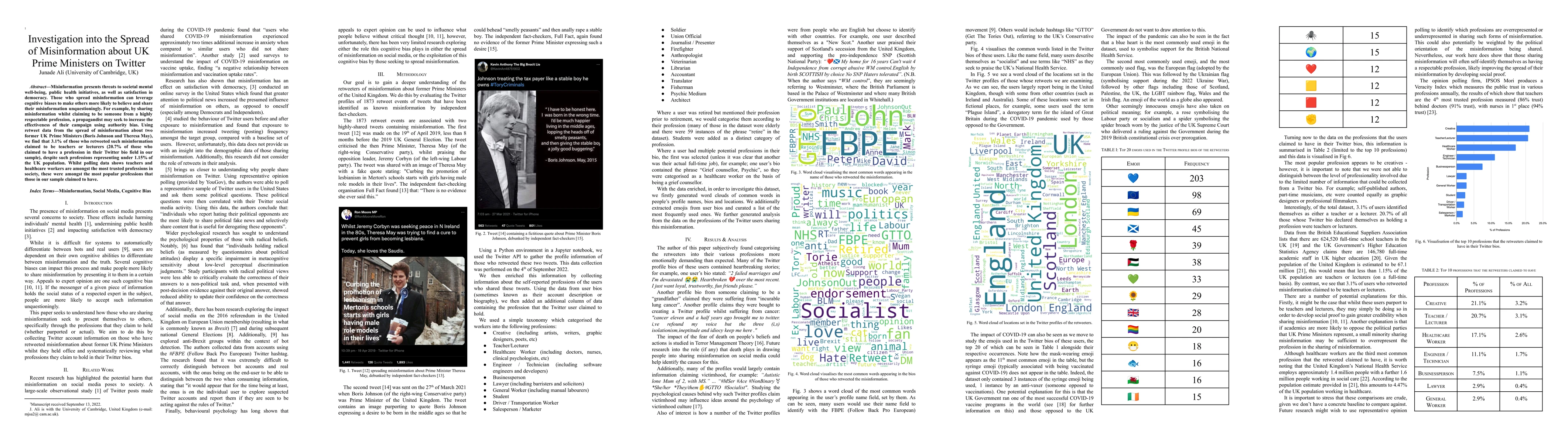 Summary: This study investigates the spread of misinformation on Twitter regarding UK Prime Ministers, identifying that 3.1% of retweeters claimed to be teachers or lecturers, leveraging authority bias despite these professions making up less than 1.15% of the UK population. This reflects how misinformation spreaders exploit trusted professions to enhance credibility.