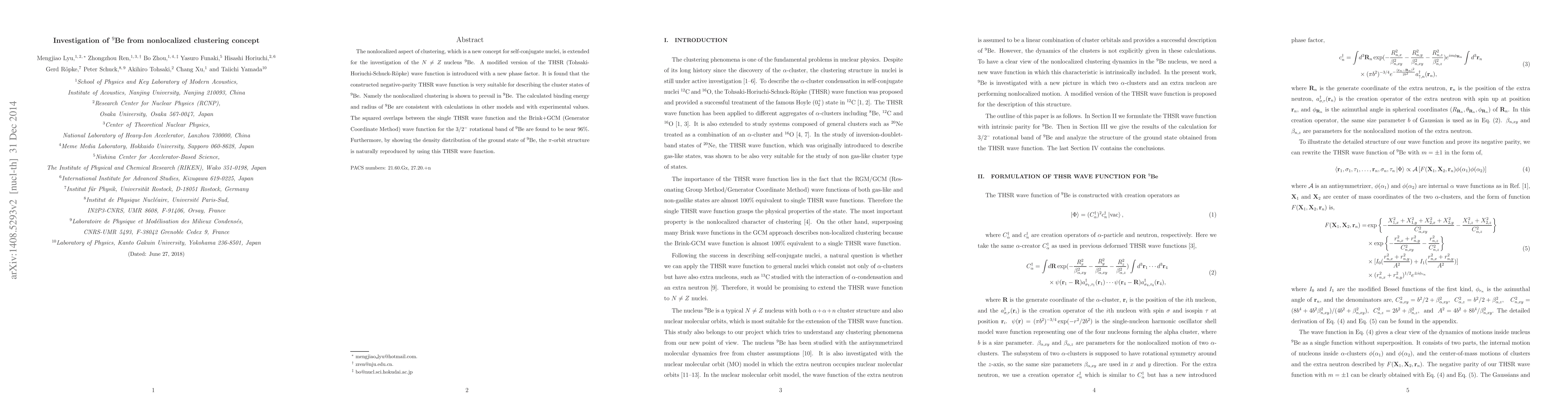 The nonlocalized aspect of clustering, which is a new concept for self-conjugate nuclei, is extended for the investigation of the N{\not=}Z nucleus ${}^9$Be. A modified version of the THSR (Tohsaki-Horiuchi-Schuck-R\"opke) wave function is introduced based on the container picture. It is found that the constructed negative-parity THSR wave function is very suitable for describing the cluster states of ${}^9$Be. Namely the nonlocalized clustering is shown to prevail in ${}^9$Be. The calculated binding energy and radius of ${}^9$Be are consistent with calculations in other models and with experimental values. The squared overlaps between the THSR wave function and the Brink+GCM wave function for the $3/2^-$ rotational band of ${}^9$Be are found to be near 96%. Furthermore, by showing the density distribution of the ground state of ${}^9$Be, the {\pi}-orbit structure is naturally reproduced by using this THSR wave function.