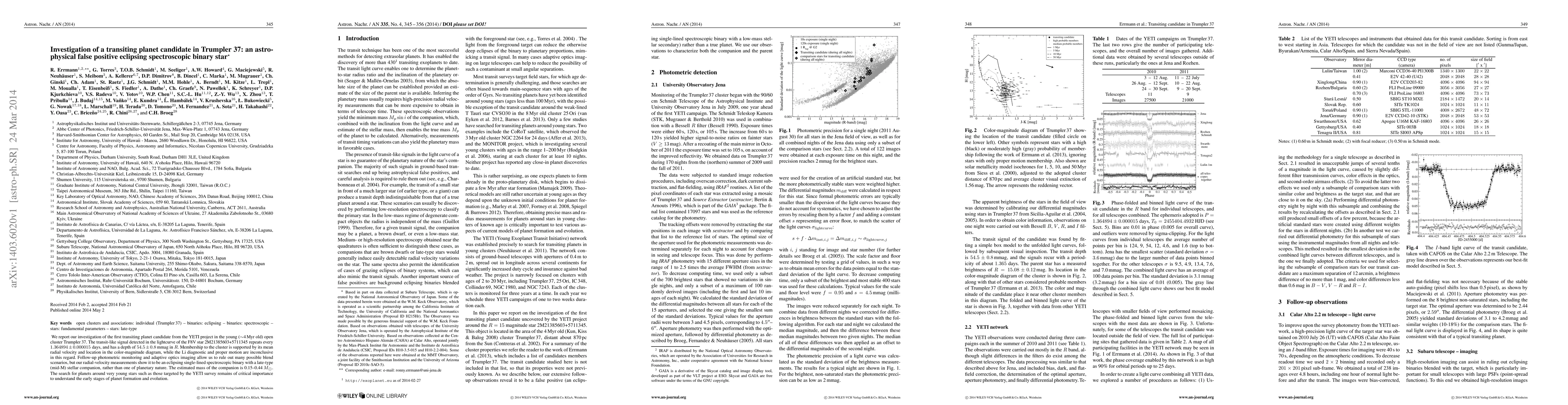 We report our investigation of the first transiting planet candidate from the YETI project in the young (~4 Myr old) open cluster Trumpler 37. The transit-like signal detected in the lightcurve of the F8V star 2M21385603+5711345 repeats every 1.364894+/-0.000015 days, and has a depth of 54.5+/-0.8 mmag in R. Membership to the cluster is supported by its mean radial velocity and location in the color-magnitude diagram, while the Li diagnostic and proper motion are inconclusive in this regard. Follow-up photometric monitoring and adaptive optics imaging allow us to rule out many possible blend scenarios, but our radial-velocity measurements show it to be an eclipsing single-lined spectroscopic binary with a late-type (mid-M) stellar companion, rather than one of planetary nature. The estimated mass of the companion is 0.15-0.44 solar masses. The search for planets around very young stars such as those targeted by the YETI survey remains of critical importance to understand the early stages of planet formation and evolution.
