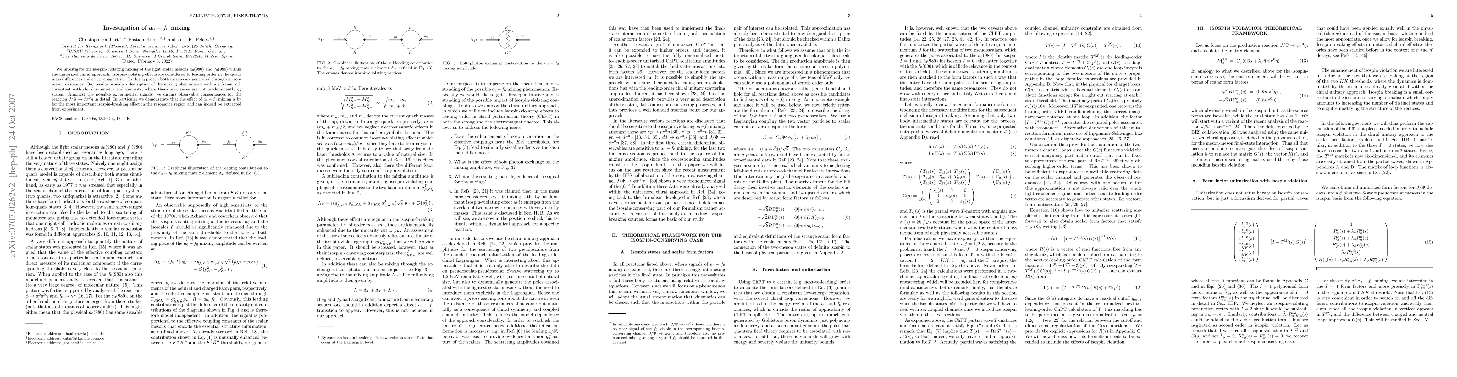 We investigate the isospin-violating mixing of the light scalar mesons a0(980) and f0(980) within the unitarized chiral approach. Isospin-violating effects are considered to leading order in the quark mass differences and electromagnetism. In this approach both mesons are generated through meson-meson dynamics. Our results provide a description of the mixing phenomenon within a framework consistent with chiral symmetry and unitarity, where these resonances are not predominantly q q-bar states. Amongst the possible experimental signals, we discuss observable consequences for the reaction J/Psi -> phi pi0 eta in detail. In particular we demonstrate that the effect of a0-f0 mixing is by far the most important isospin-breaking effect in the resonance region and can indeed be extracted from experiment.