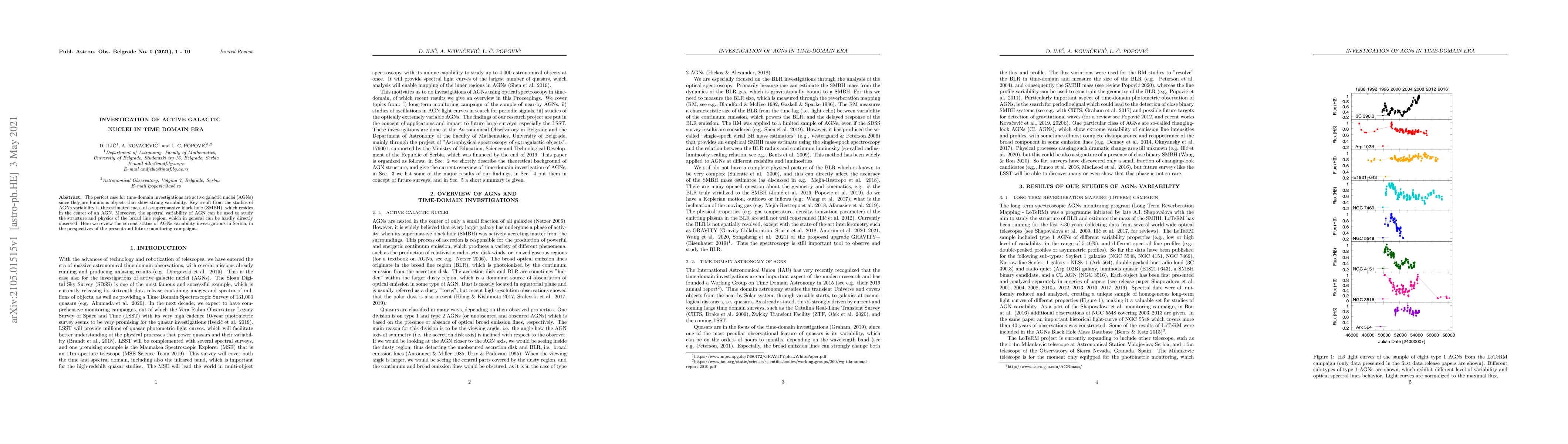 The perfect case for time-domain investigations are active galactic nuclei (AGNs) since they are luminous objects that show strong variability. Key result from the studies of AGNs variability is the estimated mass of a supermassive black hole (SMBH), which resides in the center of an AGN. Moreover, the spectral variability of AGN can be used to study the structure and physics of the broad line region, which in general can be hardly directly observed. Here we review the current status of AGNs variability investigations in Serbia, in the perspectives of the present and future monitoring campaigns.
