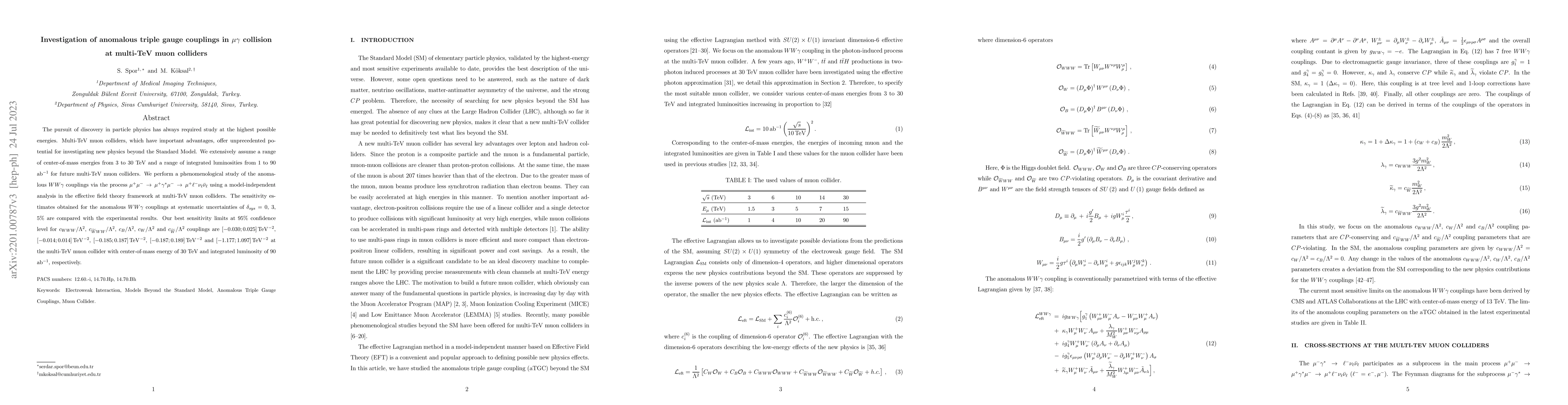 This paper investigates anomalous triple gauge couplings in $\mu\gamma$ collisions at multi-TeV muon colliders, employing an effective field theory framework to analyze the process $\mu^+\mu^- \rightarrow \mu^+\ell^-\nu_\ell \bar{\nu}_\ell$. The study finds best sensitivity limits for various couplings at 95% confidence level, indicating potential for probing new physics beyond the Standard Model.