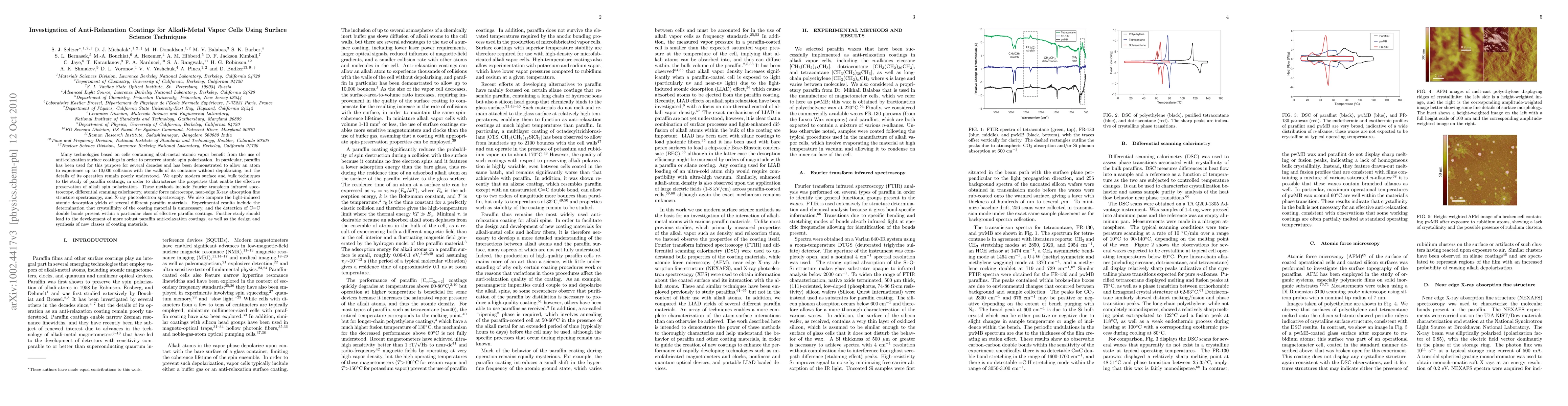 This study employs advanced surface science techniques to investigate paraffin coatings used in alkali-metal vapor cells to maintain atomic spin polarization, revealing that crystallinity is not essential and identifying C=C double bonds in effective coatings. The findings pave the way for improved paraffin coatings and the creation of new materials.