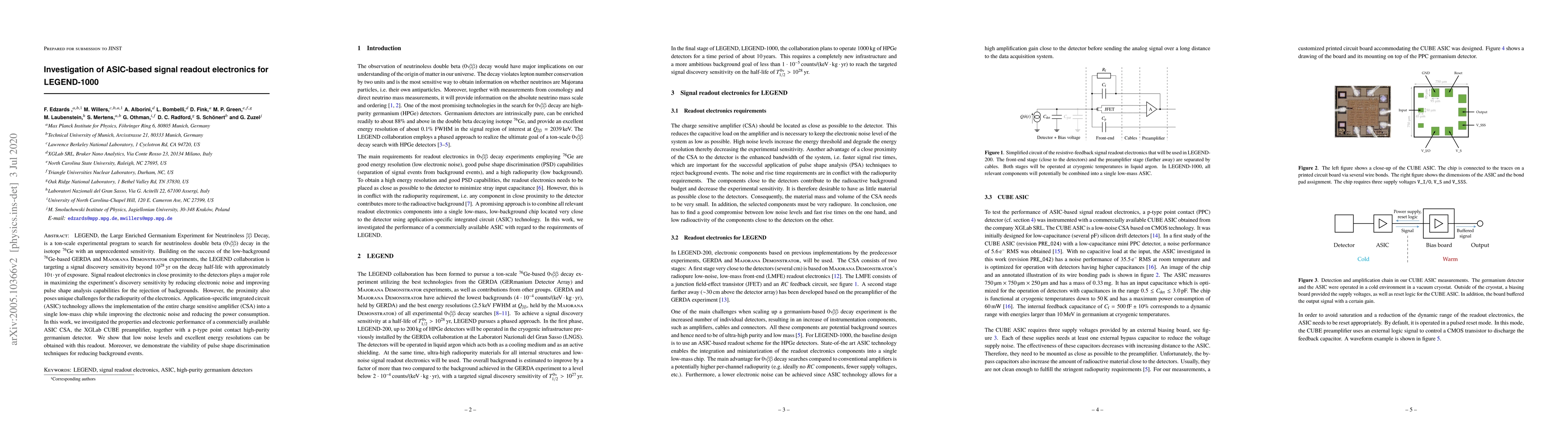 Researchers investigated the use of an ASIC-based signal readout electronics for the LEGEND-1000 experiment, finding improved noise levels and energy resolutions, as well as viable pulse shape discrimination techniques to reduce background events.