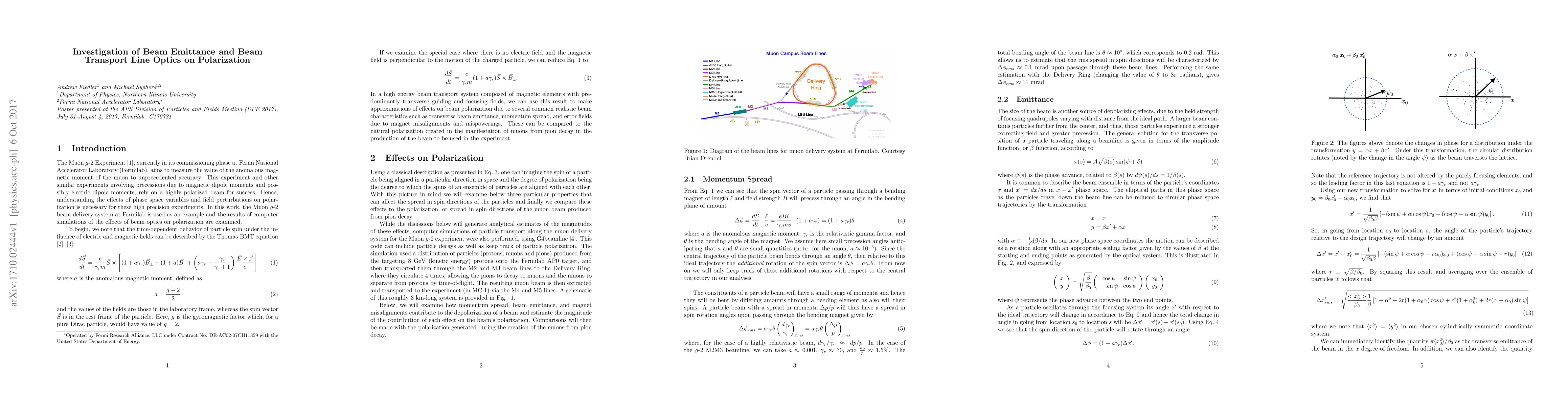 Effects of beam emittance, energy spread, optical parameters and magnet misalignment on beam polarization through particle transport systems are investigated. Particular emphasis will be placed on the beam lines being used at Fermilab for the development of the muon beam for the Muon g-2 experiment, including comparisons with the natural polarization resulting from pion decay, and comments on the development of systematic correlations among phase space variables.