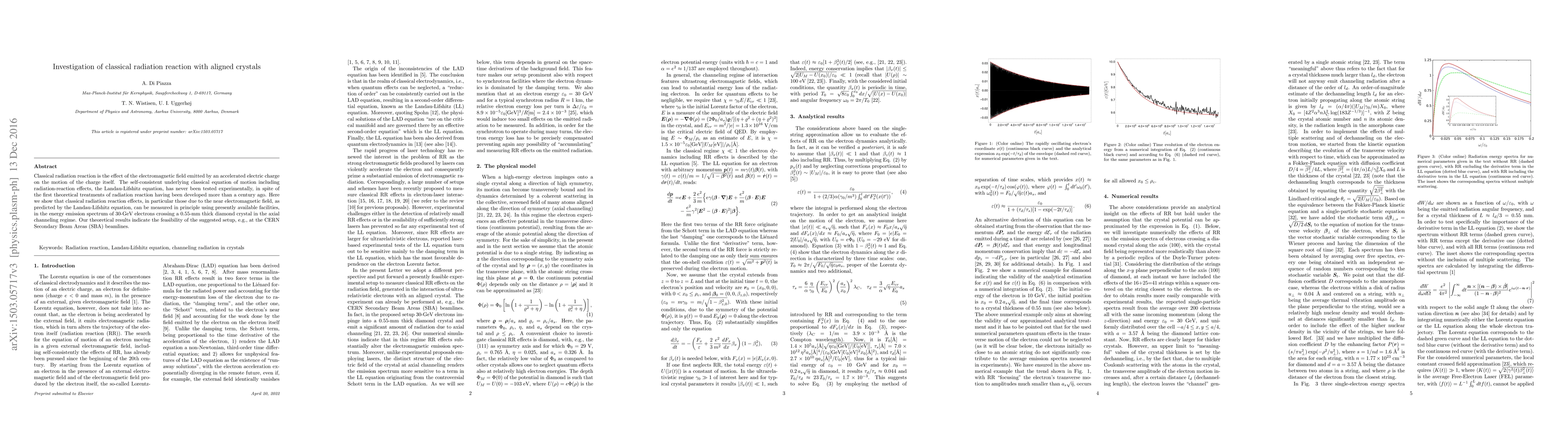 Classical radiation reaction is the effect of the electromagnetic field emitted by an accelerated electric charge on the motion of the charge itself. The self-consistent underlying classical equation of motion including radiation-reaction effects, the Landau-Lifshitz equation, has never been tested experimentally, in spite of the first theoretical treatments of radiation reaction having been developed more than a century ago. Here we show that classical radiation reaction effects, in particular those due to the near electromagnetic field, as predicted by the Landau-Lifshitz equation, can be measured in principle using presently available facilities, in the energy emission spectrum of $30\text{-}\text{GeV}$ electrons crossing a $0.55$-$\text{mm}$ thick diamond crystal in the axial channeling regime. Our theoretical results indicate the feasibility of the suggested setup, e.g., at the CERN Secondary Beam Areas (SBA) beamlines.
