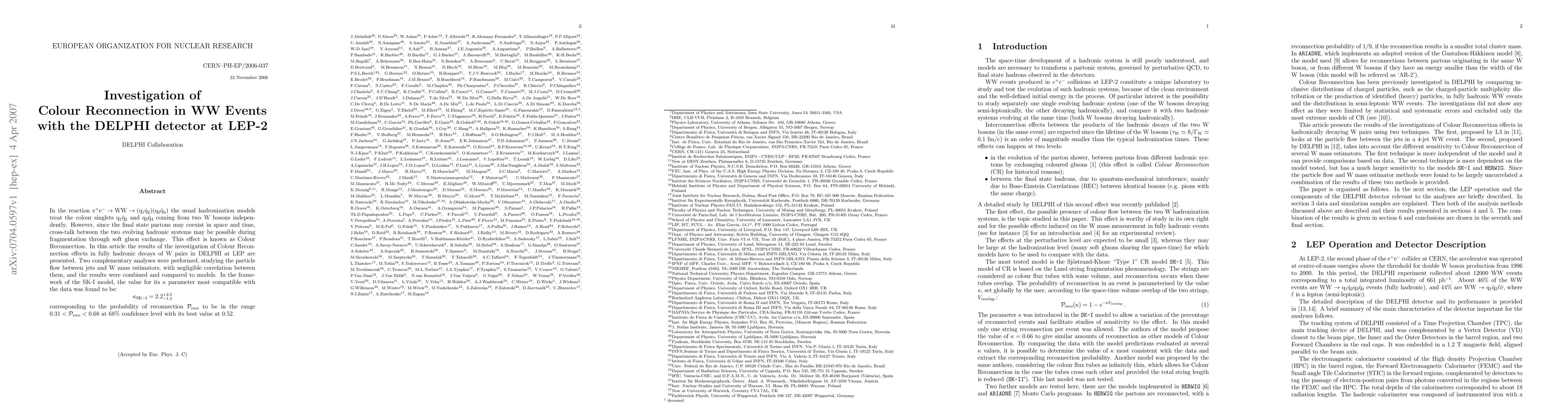 This paper investigates Colour Reconnection effects in WW events using the DELPHI detector at LEP-2, focusing on the potential interaction between two hadronic systems from W boson decays. The study finds a kappa parameter value of kappa_{SK-I} = 2.2^{+2.5}_{-1.3}, indicating a reconnection probability P_{reco} in the range 0.31 < P_{reco} < 0.68 at 68% confidence level, with a best estimate of 0.52.