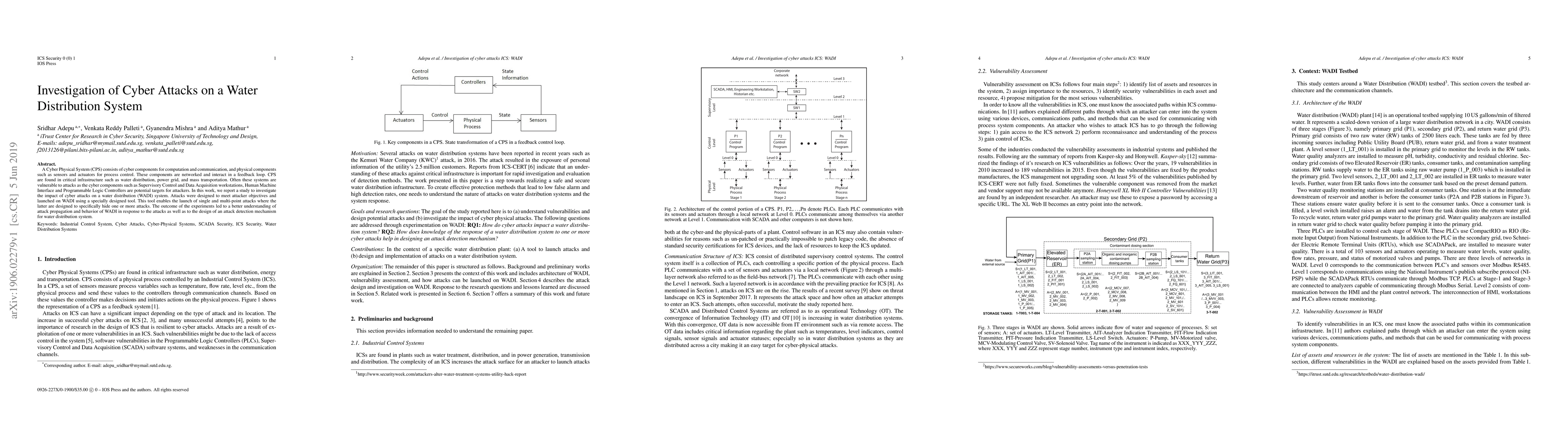 This study investigates the impact of cyber attacks on a water distribution system (WADI), employing a tool to launch single and multi-point attacks, revealing attack propagation and informing the design of an attack detection mechanism.