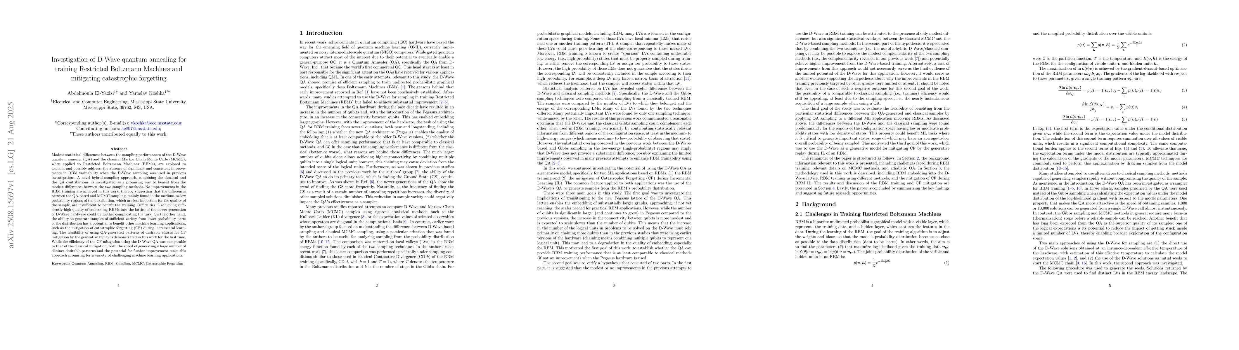 Modest statistical differences between the sampling performances of the D-Wave quantum annealer (QA) and the classical Markov Chain Monte Carlo (MCMC), when applied to Restricted Boltzmann Machines (RBMs), are explored to explain, and possibly address, the absence of significant and consistent improvements in RBM trainability when the D-Wave sampling was used in previous investigations. A novel hybrid sampling approach, combining the classical and the QA contributions, is investigated as a promising way to benefit from the modest differences between the two sampling methods. No improvements in the RBM training are achieved in this work, thereby suggesting that the differences between the QA-based and MCMC sampling, mainly found in the medium-to-low probability regions of the distribution, which are less important for the quality of the sample, are insufficient to benefit the training. Difficulties in achieving sufficiently high quality of embedding RBMs into the lattice of the newer generation of D-Wave hardware could be further complicating the task. On the other hand, the ability to generate samples of sufficient variety from lower-probability parts of the distribution has a potential to benefit other machine learning applications, such as the mitigation of catastrophic forgetting (CF) during incremental learning. The feasibility of using QA-generated patterns of desirable classes for CF mitigation by the generative replay is demonstrated in this work for the first time. While the efficiency of the CF mitigation using the D-Wave QA was comparable to that of the classical mitigation, both the speed of generating a large number of distinct desirable patterns and the potential for further improvement make this approach promising for a variety of challenging machine learning applications.