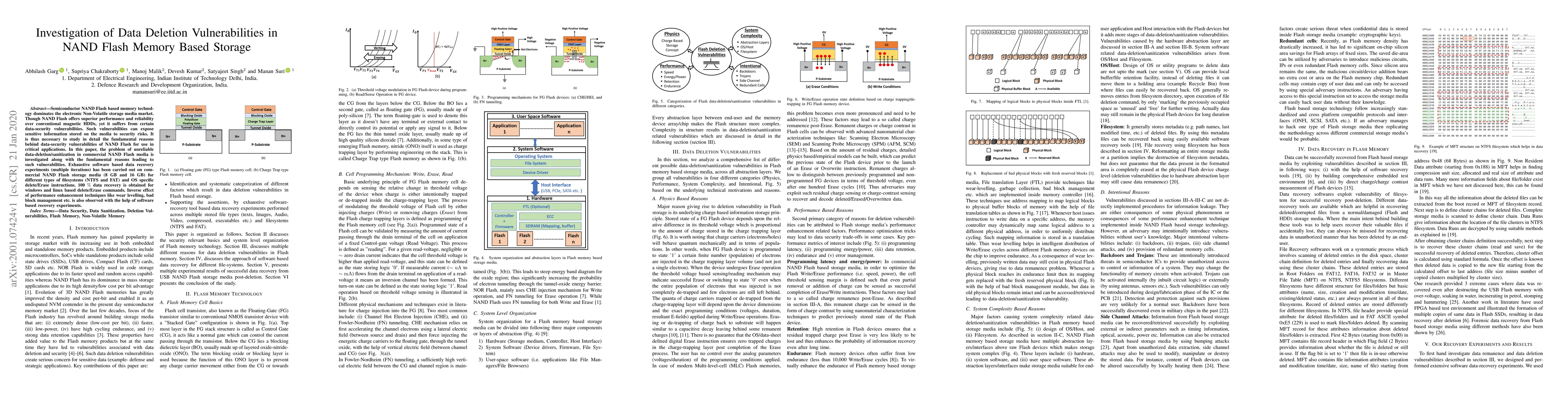 This paper investigates the vulnerabilities in data deletion/sanitization in NAND Flash memory, revealing that commercial NAND Flash media can still recover 100% of deleted data using software, despite performance enhancement techniques. The study highlights the security risks associated with unreliable data deletion in critical applications.